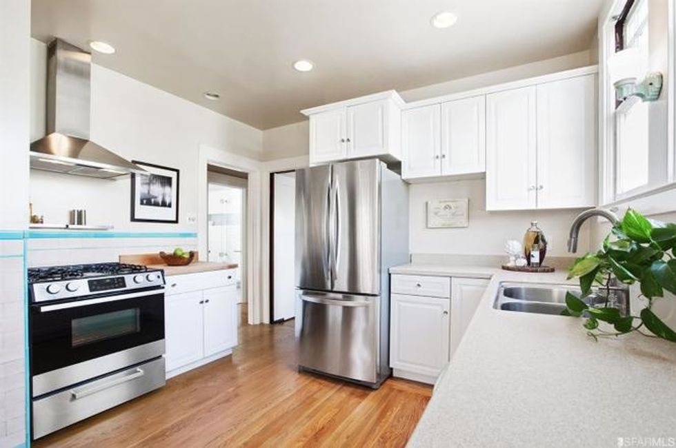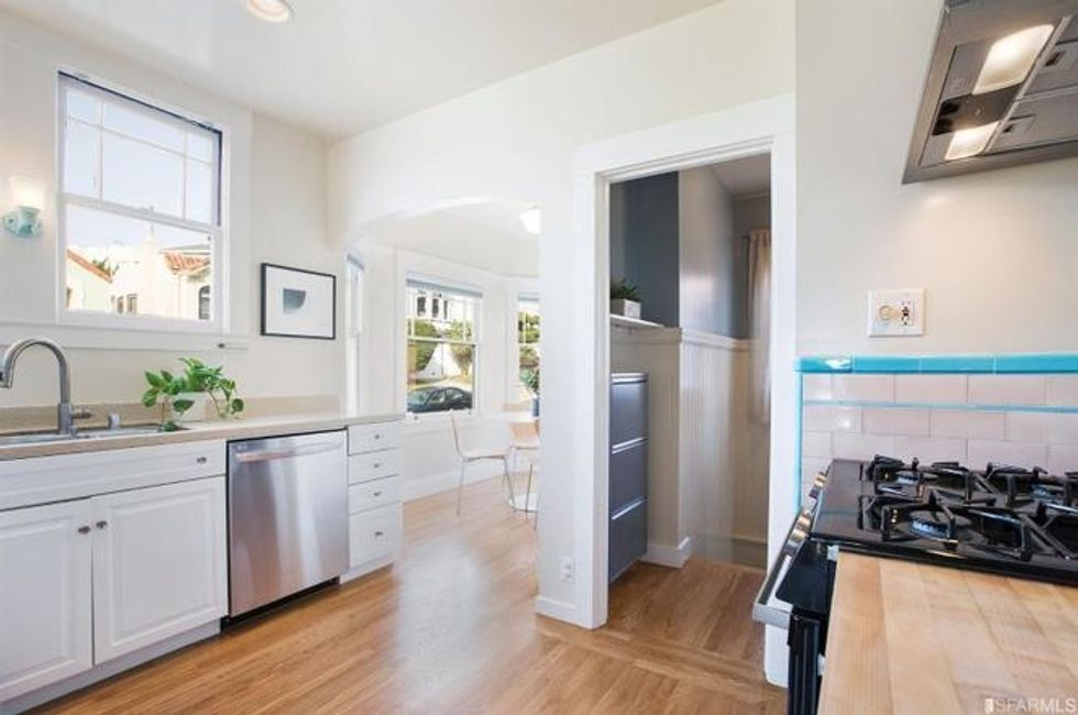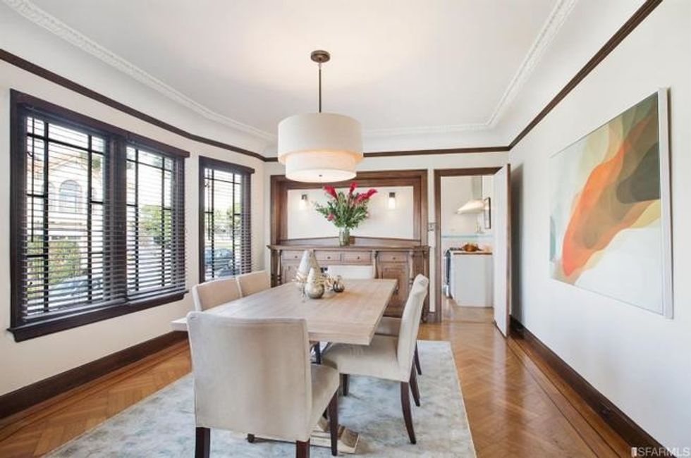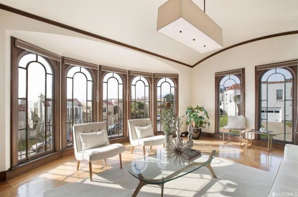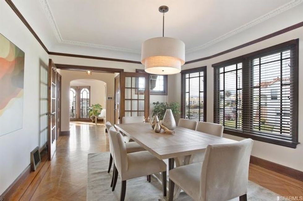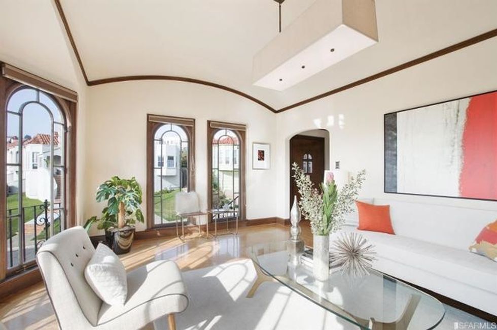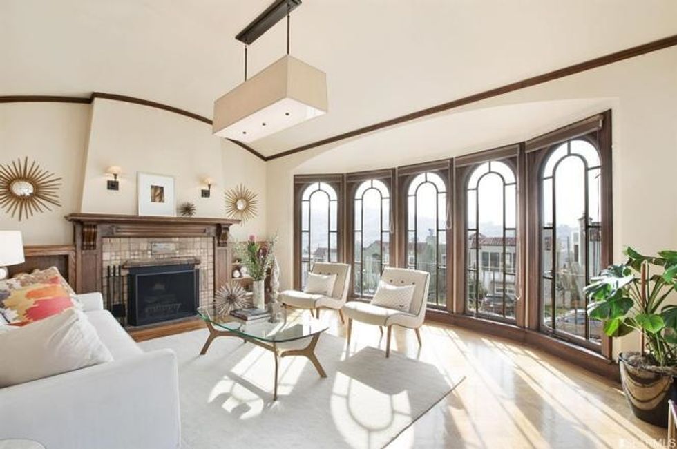 Built in 1927 on a corner lot, this Spanish-style home has as much light as it does gorgeous period details. Lovers old homes will relish the many arched casement windows, as well as the parquet floors, dark wood trim, and overised fireplace in the living room.