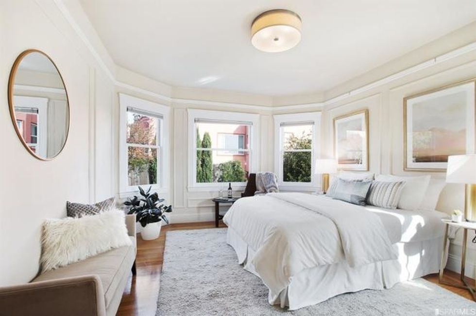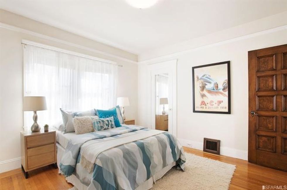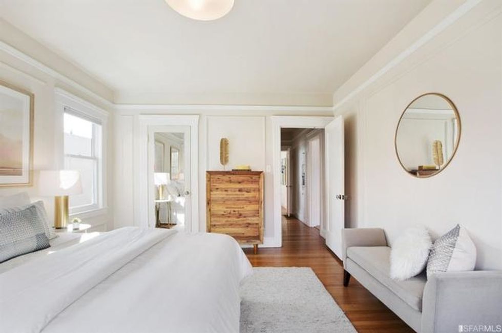 Upstairs are two bright bedrooms with detailed molding and hardwood floors—just toss in some chic furniture and a few pieces of art and you've got the makings of an Instagram-worthy home with neighborhood views—can't you just see your favorite midcentury chair in front of that cityscape at sunset?