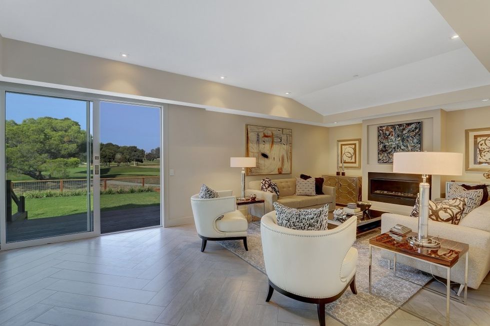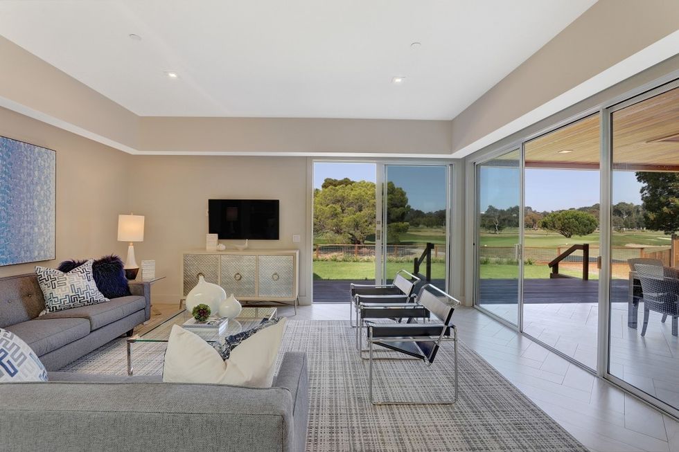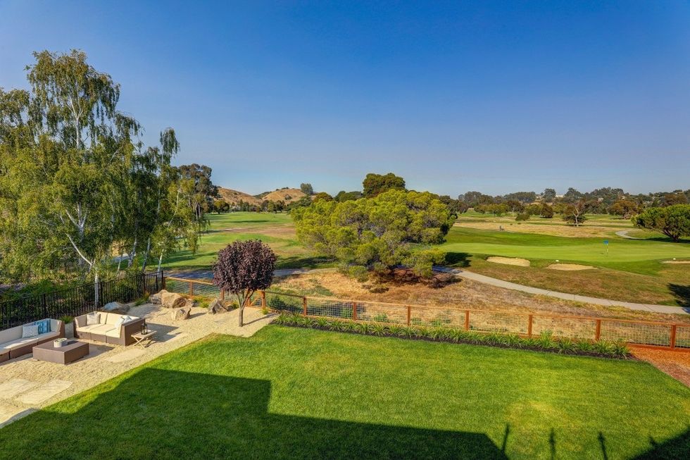 Set on a third of an acre overlooking the 7th and 8th tees of an 18-hole golf course, the 4,400-square-foot, five-bedroom house promises resort-style life.