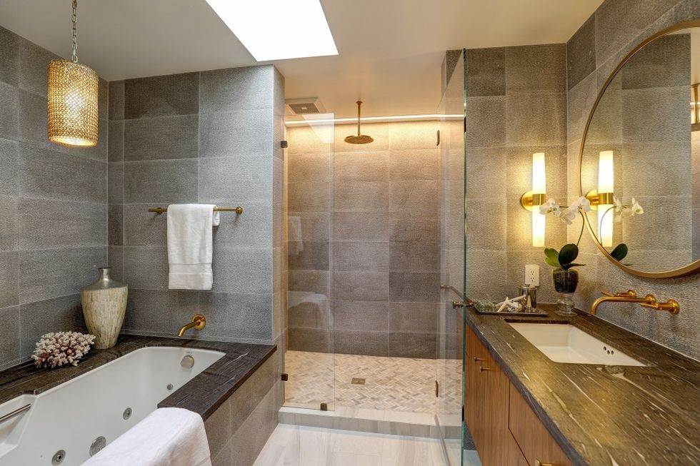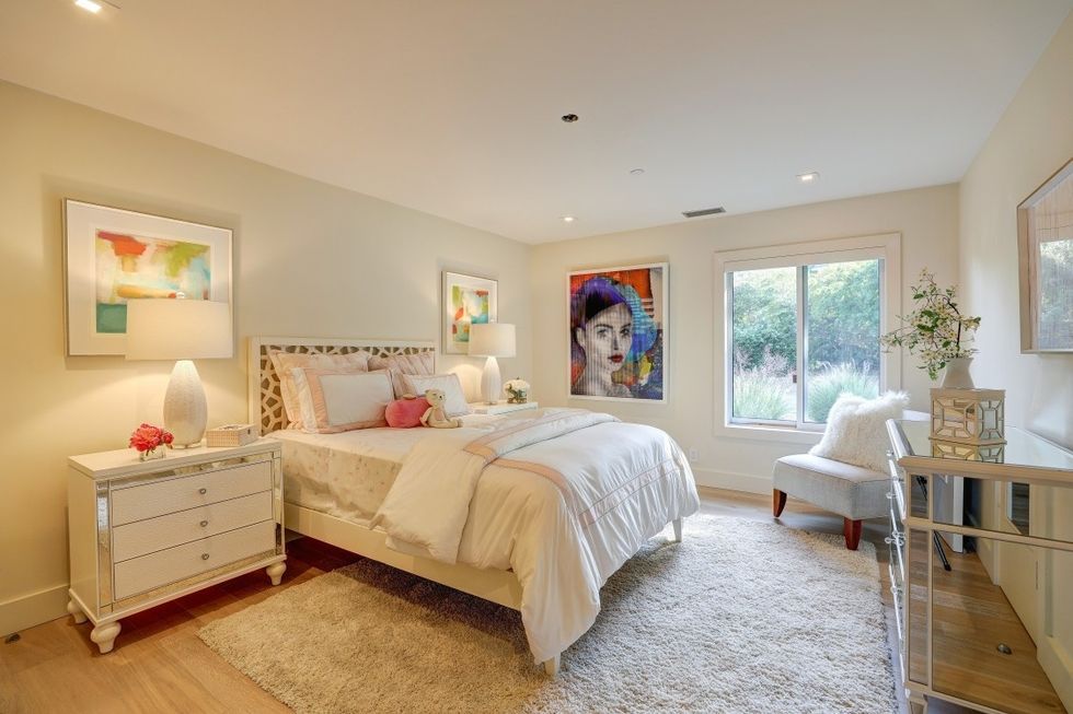 Also on the ground floor are four bedrooms each with something special, be it a garden view, private sitting area, or access to the yard. Three bathrooms have handmade Ann Sacks tiles, oversized tubs, and porcelain tile floors.