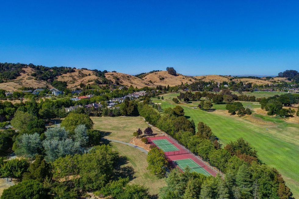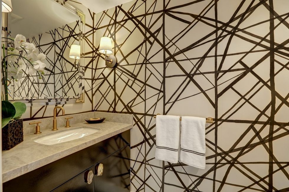With access to waterfront, tennis courts, and hiking trails, the home is teeming with designer finishes—think a Kelly Wearstler–inspired formal powder room with custom wall coverings, vanity, brass fixtures, and sconces; a chef's kitchen with Italian Snaidero cabinets, open white oak shelving, and Brazilian quartzite countertops with leather finish; and white oak herringbone floors throughout.