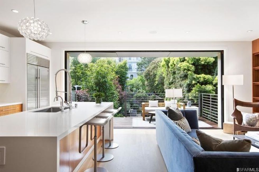 Glorious indoor/outdoor living is the name of the game at this three-level home tucked between Mission Dolores and Noe Valley, which has been carefully renovated in steel, glass, concrete, and wood to fit seamlessly in its surrounds.