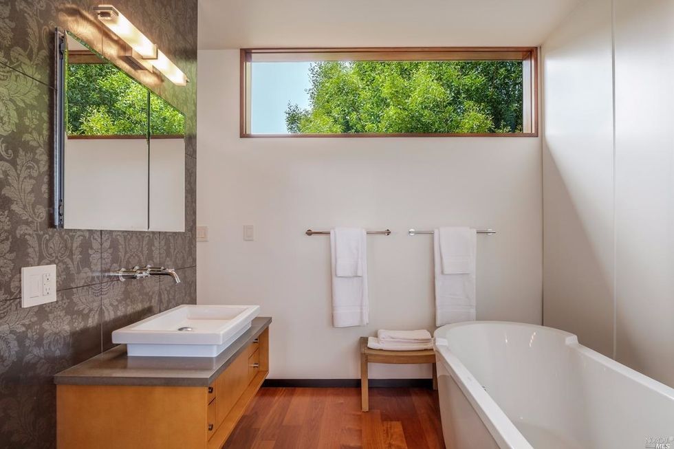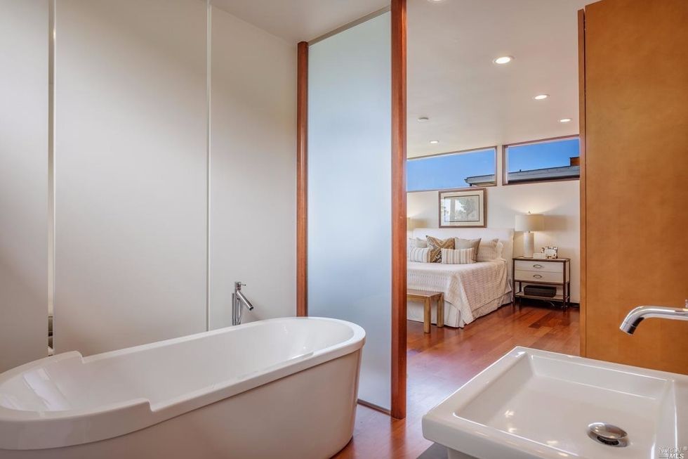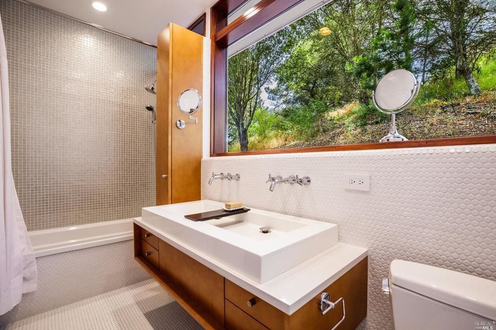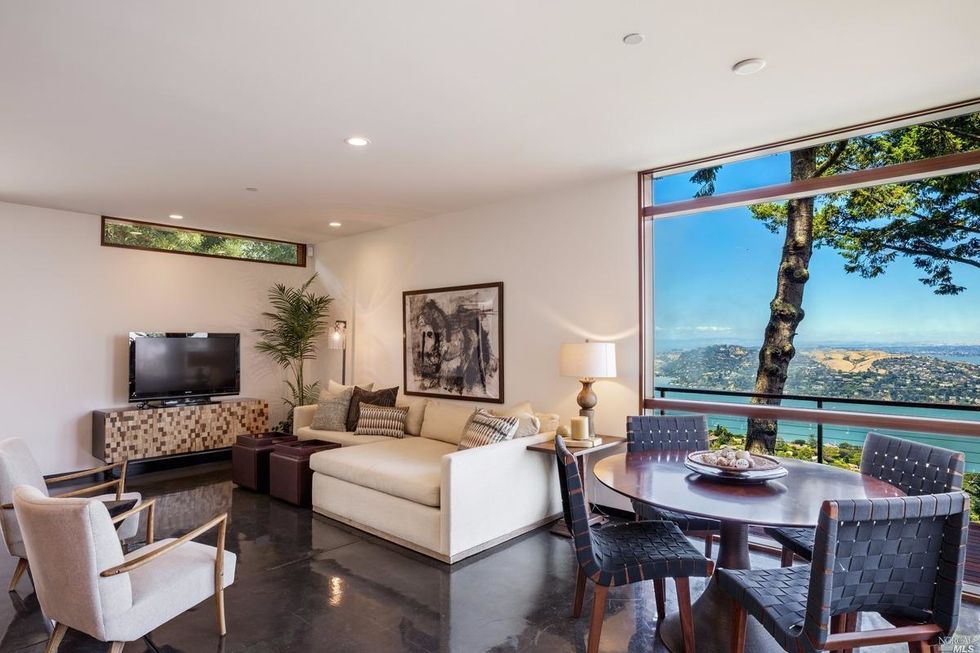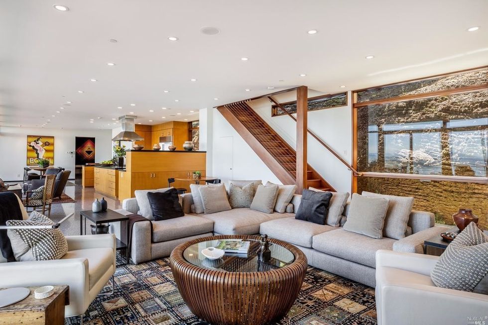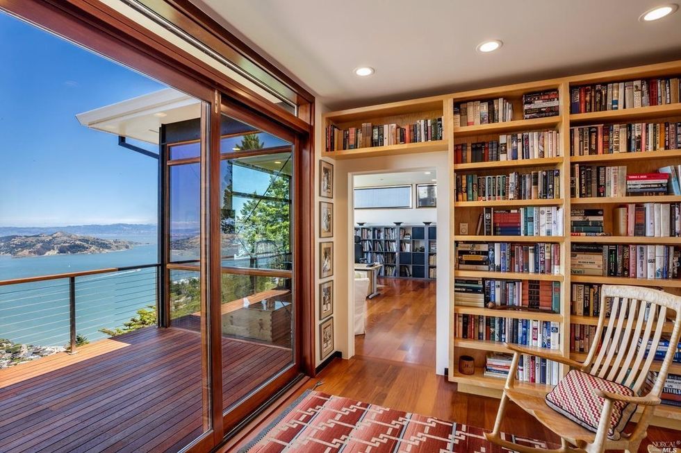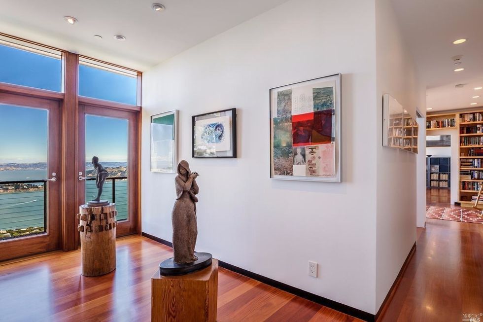 Wall-to-wall glass windows open up to expansive vistas that span eight counties, three glistening bays, and both Angel and Alcatraz islands—you can literally take in a different, unique view from each room of the house. You can even watch the Bay Bridge light show from your large soaking tub. Gorgeous wood accents run throughout the abode, offering a sense of modern warmth to the airy, neutral palette. The entire home recently underwent a full update, and has pretty much everything you'd need in a sanctuary, including a workout room, multiple bathtubs, closet and shelf space galore, endless outdoor lounge space, and office space should you ever get motivated to work.