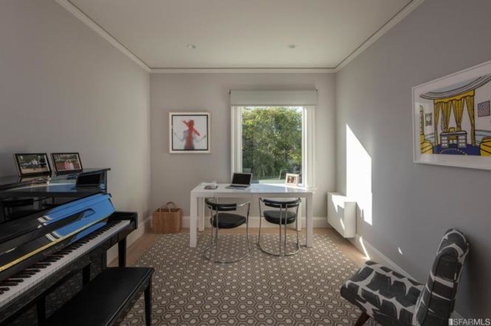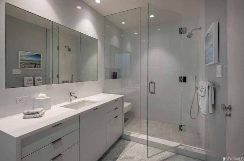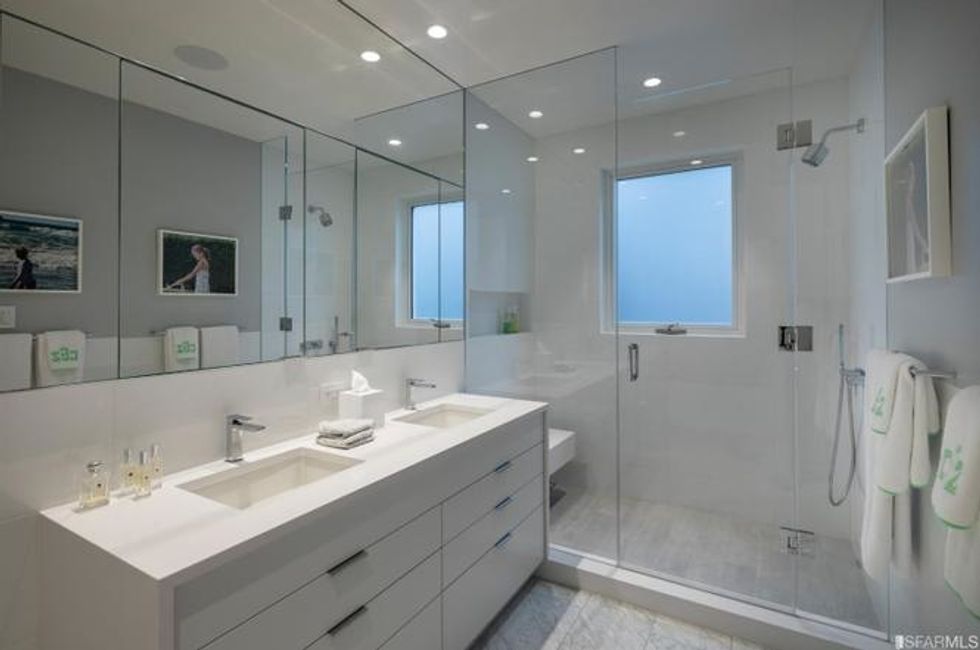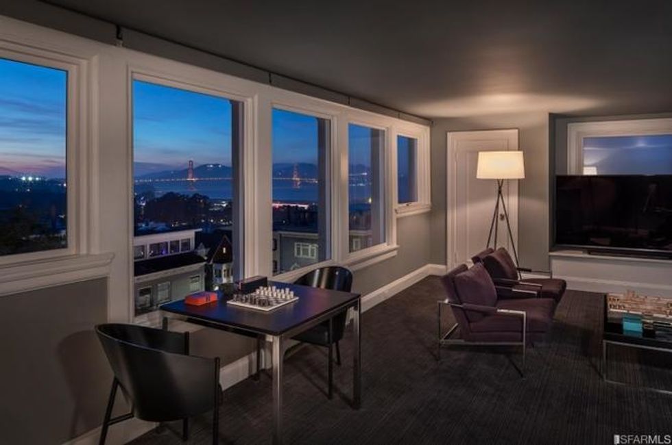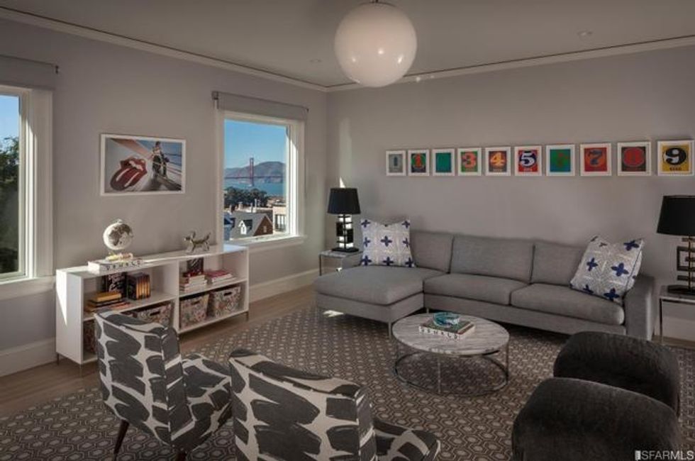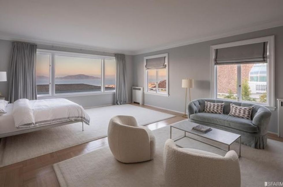 The upstairs houses four bedrooms plus the master suite, where the lord or lady of the house can laise about in a private sitting area beside the fire. There is also a lounge and media room steeped in sunshine here, and views from the Golden Gate Bridge to Alcatraz through the picture windows.