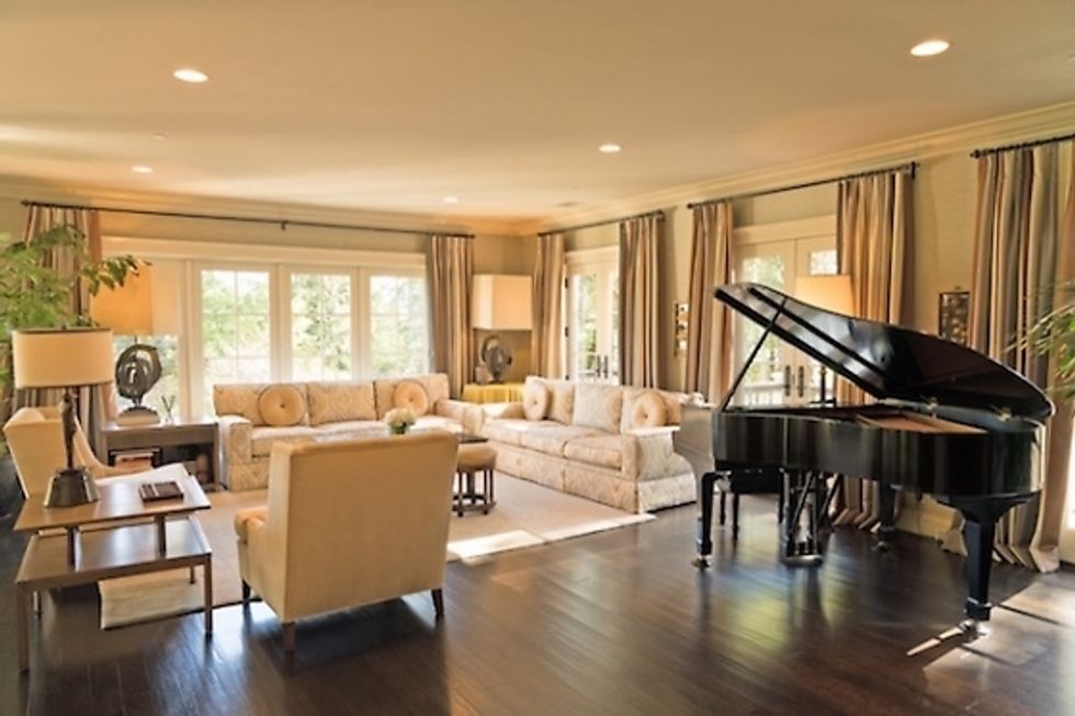 Inside the home, exquisite hand-scraped cross grain oak floors and 9-foot ceilings greet you at the front door. The kitchen is decked out in custom walnut cabinetry and includes two Miele dishwashers, two refrigerators, one floor-to-ceiling freezer, an ice-maker, two built-in ovens and a 6-burner Viking range and oven.