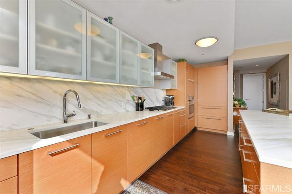 Located in the Grand Residences, the condo exudes the perfect mix of contemporary Bay Area life with classic touches. The unit comes with a full kitchen, joint living room/dining room, and 2 bathes for soaking (of course). But the real reason everyone's dying to live here? The view of the city (radiant through the floor to ceiling windows in the living room) as you sip coffee in the morning or scotch before bed. Cheers.