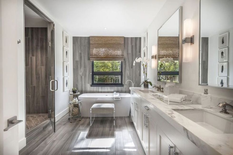An all new construction, this four-bedroom home is fashioned after the iconic farmhouse (it has a classic board and batten exterior and a corrugated metal roof) but is designed for modern life.