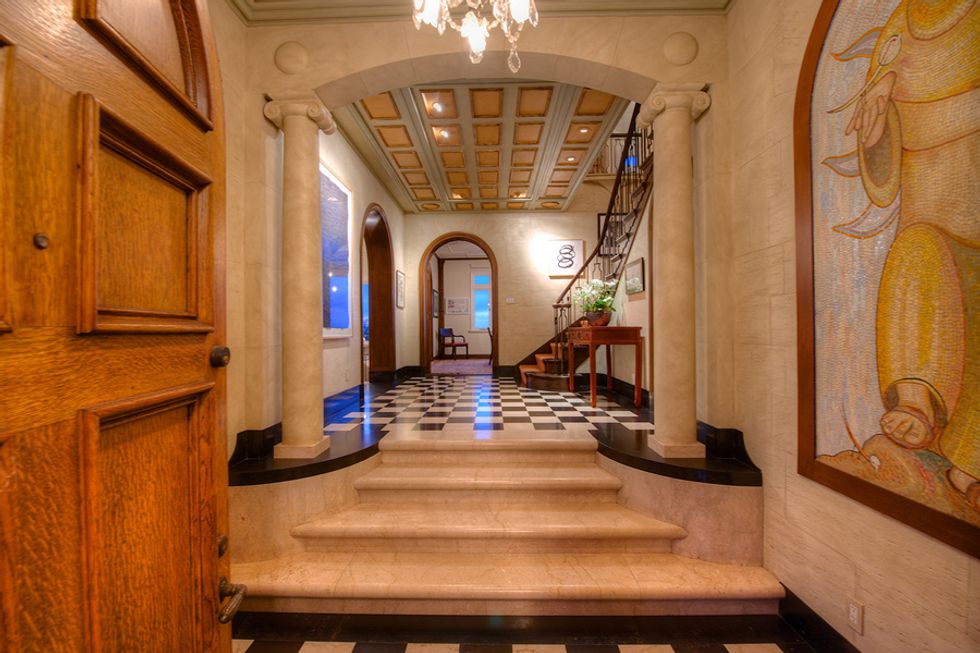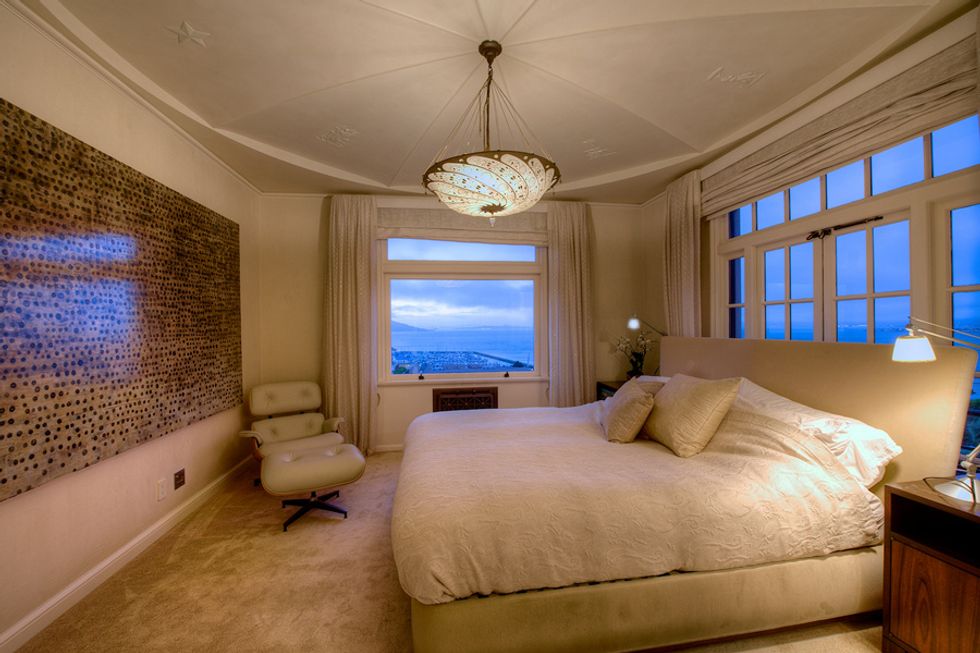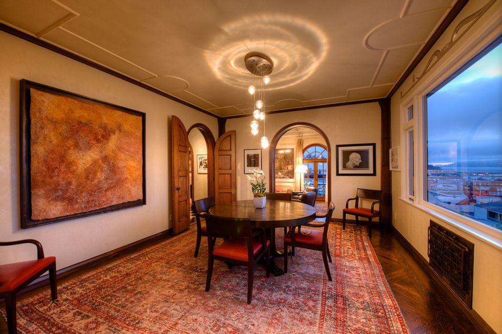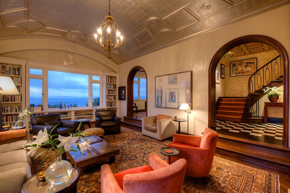 Once inside, you may need to remind yourself you aren't in Italy by looking out the wide windows for sweeping views of the Golden Gate Bridge, San Francisco Bay, and Alcatraz Island. Enjoy a homemade espresso in the library before dining in the state-of-the-art kitchen featuring top-of-the-line appliances as well as a caterer's kitchen and wine cellar. After a night of entertaining, guests can retire to their own suite including a kitchenette for gourmet midnight snacks. Your new home even comes with two car detached garage motor court equipped with a Tesla charging station. That's amore.