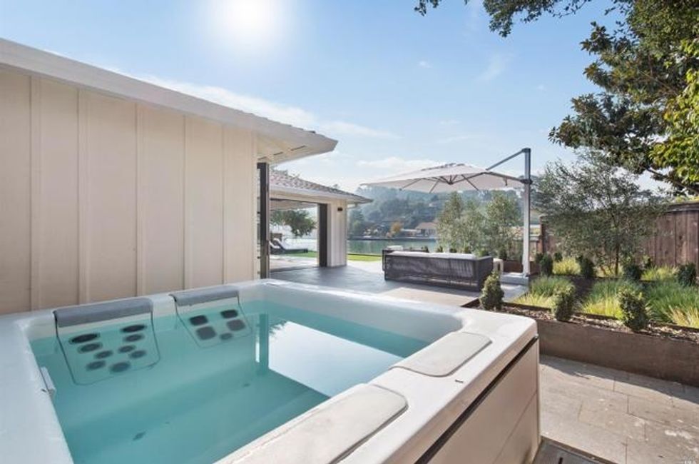 All four bedrooms have wooded views, while the master has direct access to the patio and water. Outside, coastal greenery, the boat dock, and hot tub await. Paddle out into the harbor, or stay in and soak up the Marin County sun.