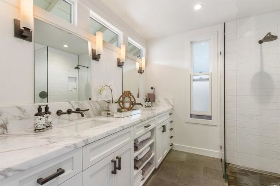 The best days at this 2,700-square-foot home will begin with breakfast at the marble island counter warmed by a fireplace (so hygge!)—there are also floor to ceiling cabinets, wine storage, and a butler's pantry—and end with a perfect sunset out the west-facing windows.