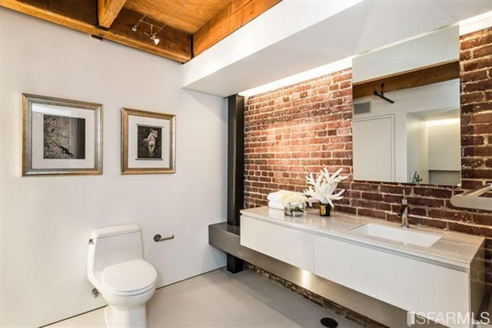 From the exposed brick-and-concrete walls to the array of designer furniture, this glamorous 2 bedroom/2 bath studio isn't just swoon-worthy, it's an exhibitionist's dream: The master bedroom is visible from nearly every corner of the loft.