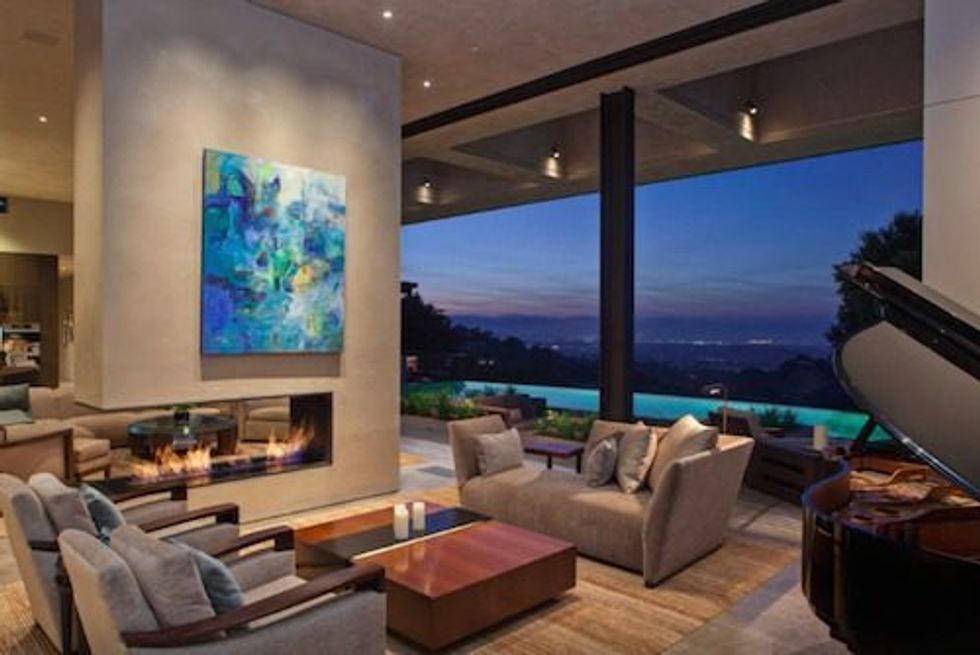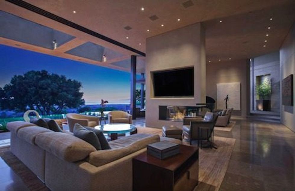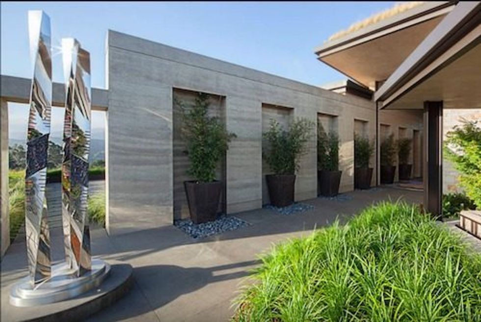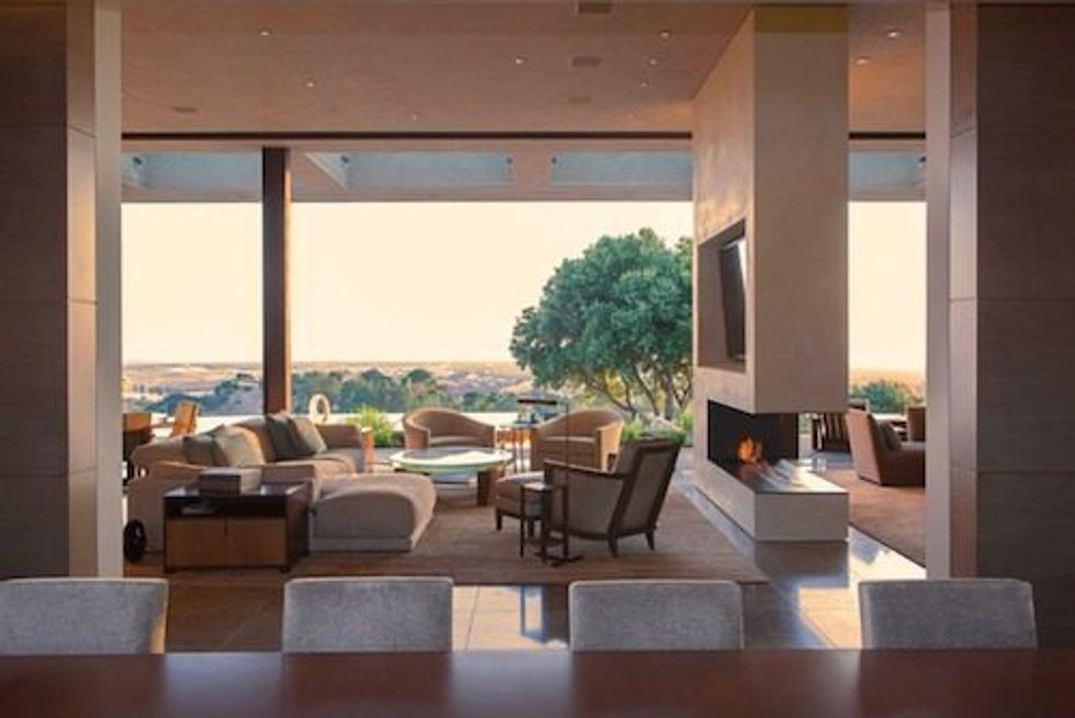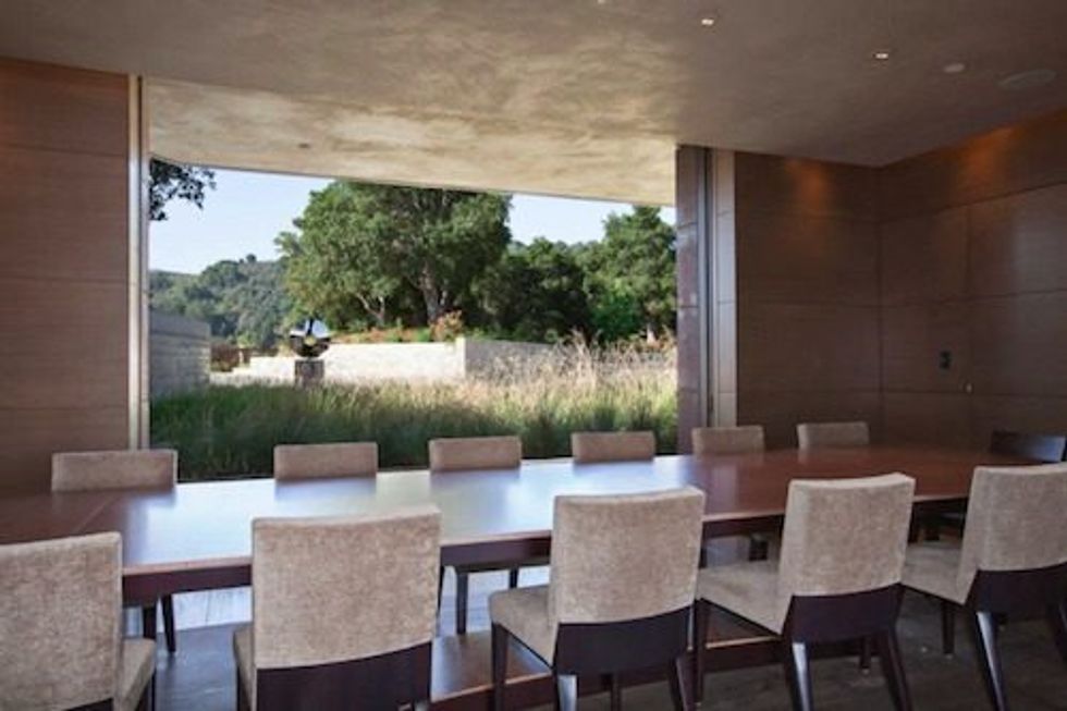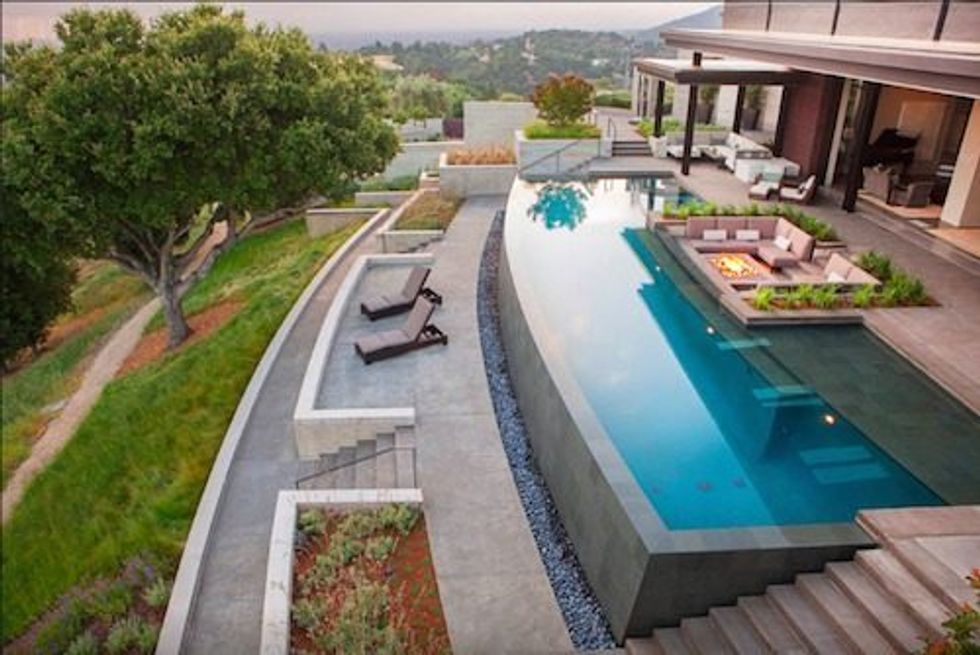 With sweeping view of the San Francisco Bay Area, the net-zero energy home features walls of glass, five bedrooms, eight bathrooms, a game room, fitness center, vanishing edge pool, spa, outdoor fire pit, and full bar. There's also a kitchen with five ovens, 60 fruit trees, a year-round vegetable garden, and a chicken coop.