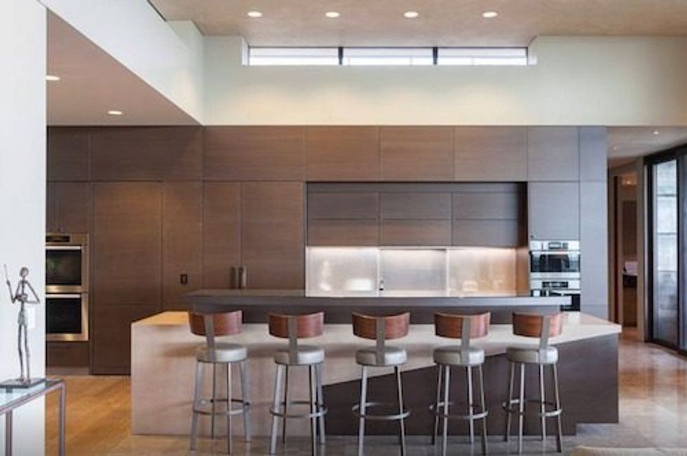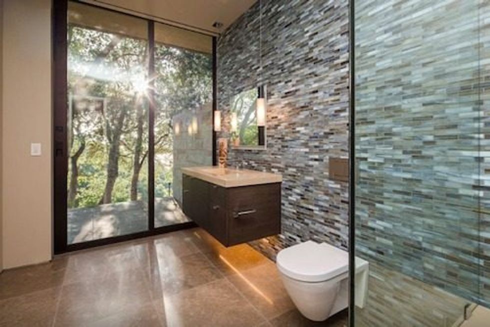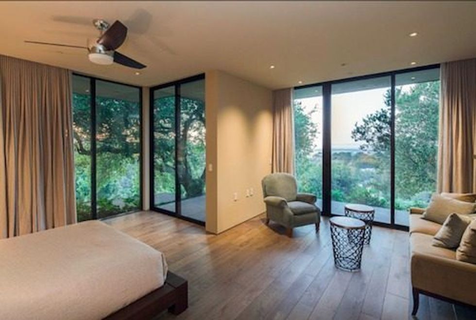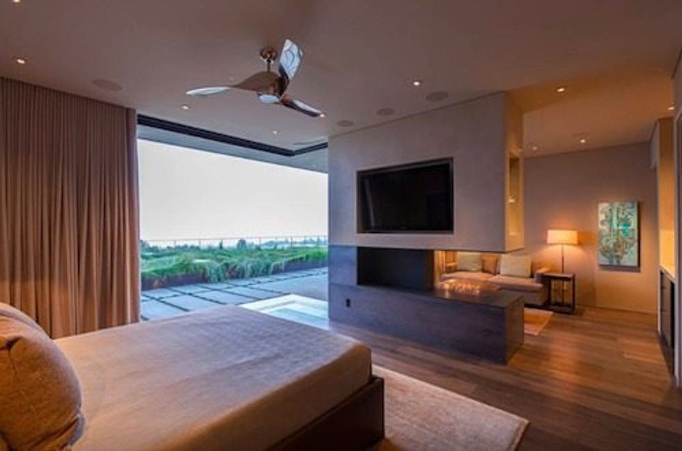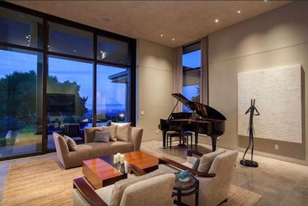 With sweeping view of the San Francisco Bay Area, the net-zero energy home features walls of glass, five bedrooms, eight bathrooms, a game room, fitness center, vanishing edge pool, spa, outdoor fire pit, and full bar. There's also a kitchen with five ovens, 60 fruit trees, a year-round vegetable garden, and a chicken coop.