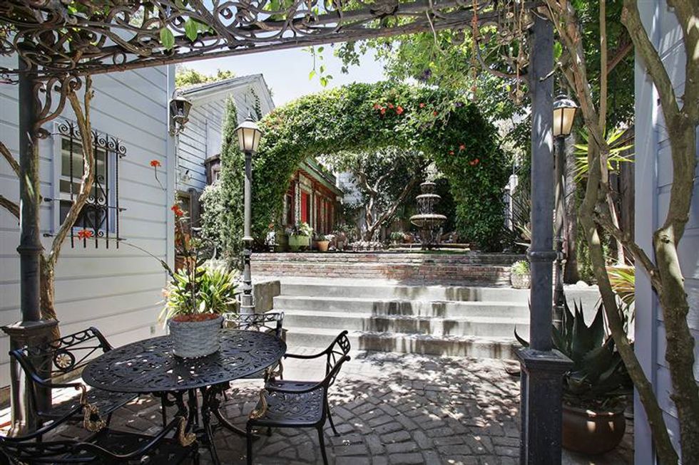 Four bedrooms comprise the second floor. But the roof deck is where is where the party is: A New Orleans–style garden oasis, with a Spanish fountain and small cottage, feels just like the rocker haven you'd expect.