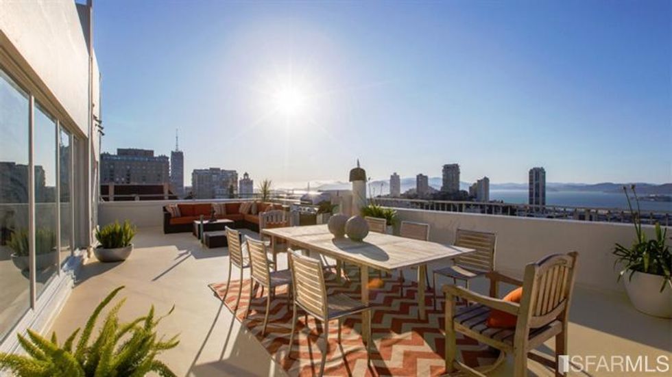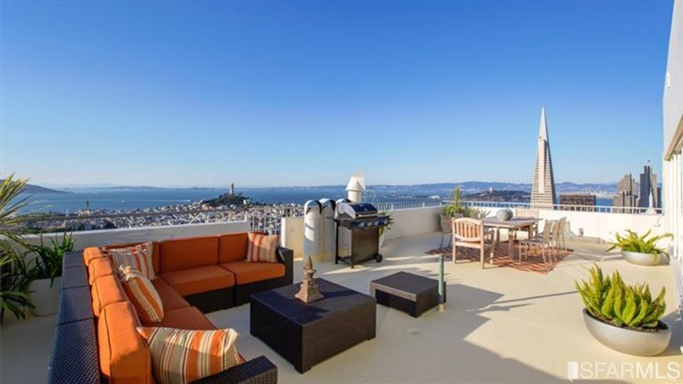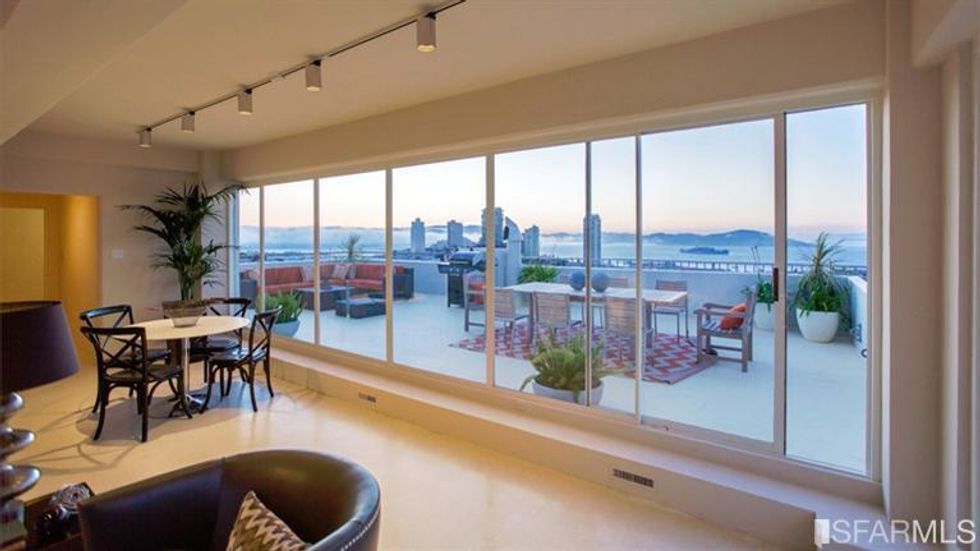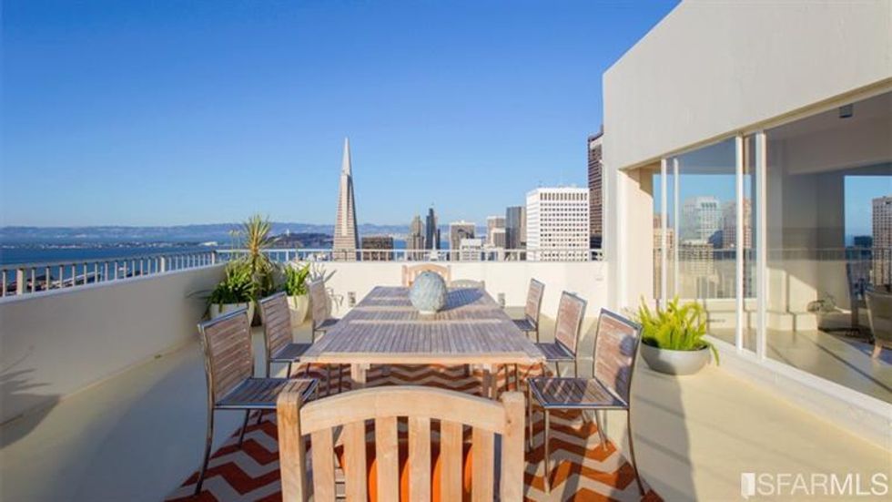 With more than 2,200 feet of unobstructed viewing decks, you need never again trek to the top of Twin Peaks, Bernal Heights, or Telegraph Hill to see SF in all of its glory. When it starts to get chilly, bundle up inside and peer out of the condo's huge windows for panoramic views of everything from the Transamerica Pyramid to Coit Tower to the Bay.