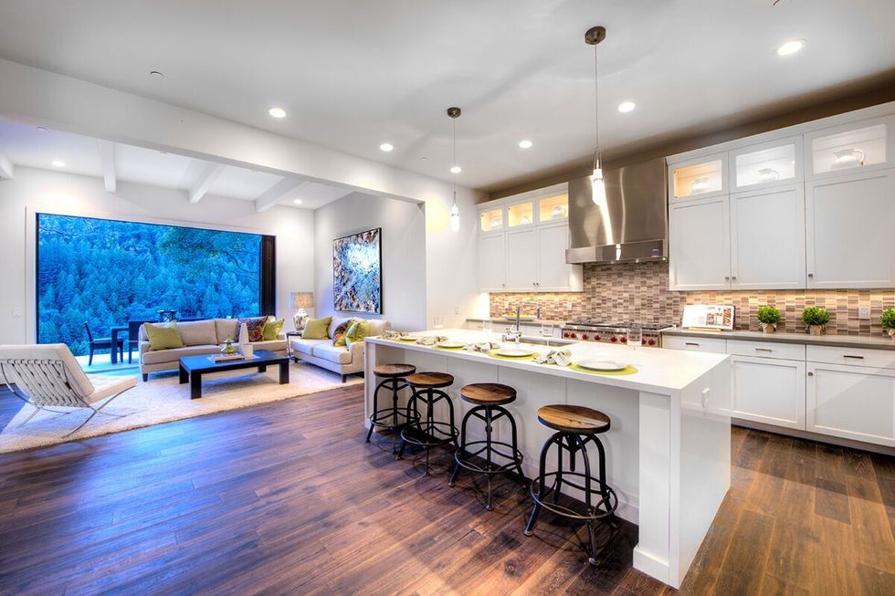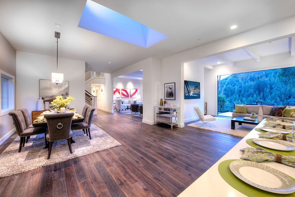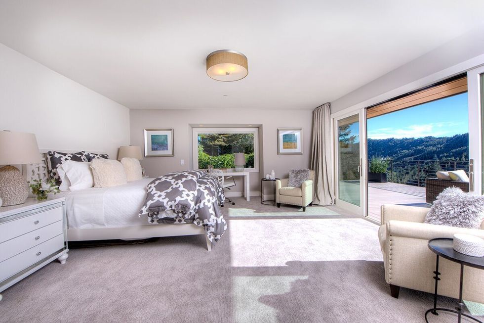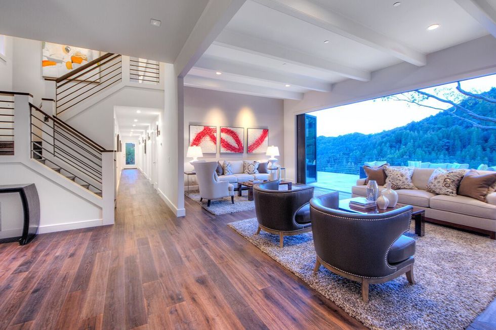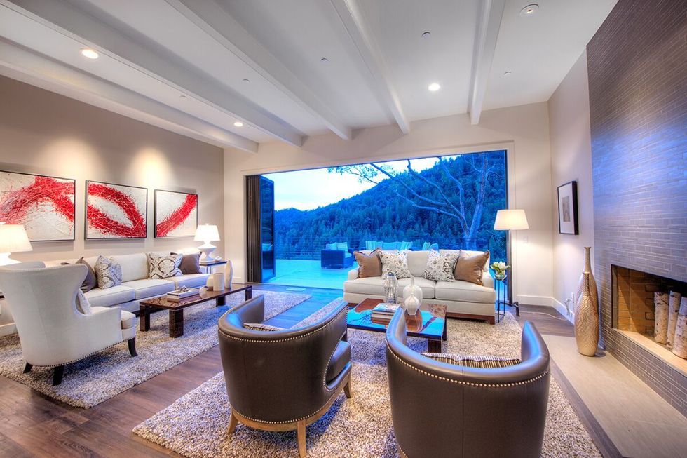 On sunny days, the trees get a little bit greener, and the sky painted over the outskirts of Kentfield becomes a more vibrant shade of blue. And with floor-to-ceiling windows and broad doors that open onto the outdoors, this castle of a home promises panoramic views and easy access to outside activities.