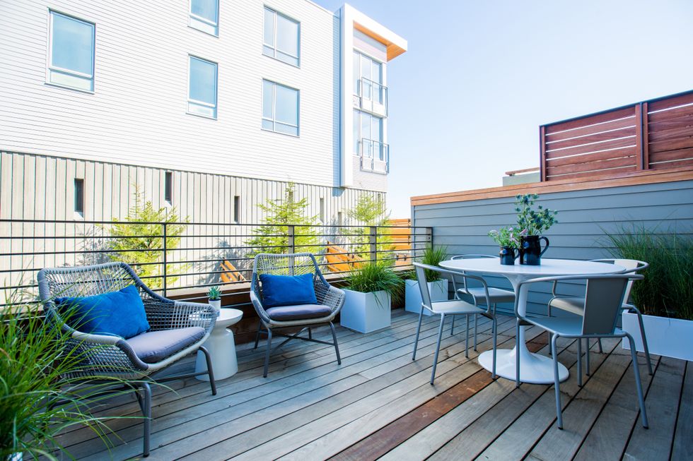Housing is sectioned in three different communities—Alma, Engel, and Thayer—where you can have your choice of two- and three-bedroom town homes (ranging from 1,072 to 1,437 sq. ft.); one- to three-bedroom flats (603 to 1,342 sq. ft.); and, for classicists, Edwardian-inspired homes with one- and two-bedroom floorplans. Many of the properties have private balconies, and rooftop decks offer insane views of the city skyline and the SF Bay.