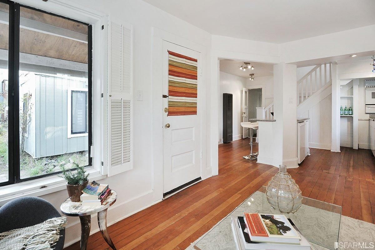 San Francisco ex-mayor Adolph Sutro used his mining fortune to build this special abode. A cobblestone path leads guests past the covered front porch and into the intimate quarters of this two-story cottage. The first floor boasts an open-floor plan with the home's original hardwood floors and period details. Chic and modern decor fill the space. A laundry room and updated kitchen round out the bottom level, while two bedrooms, a family room, and bathroom can be found upstairs.