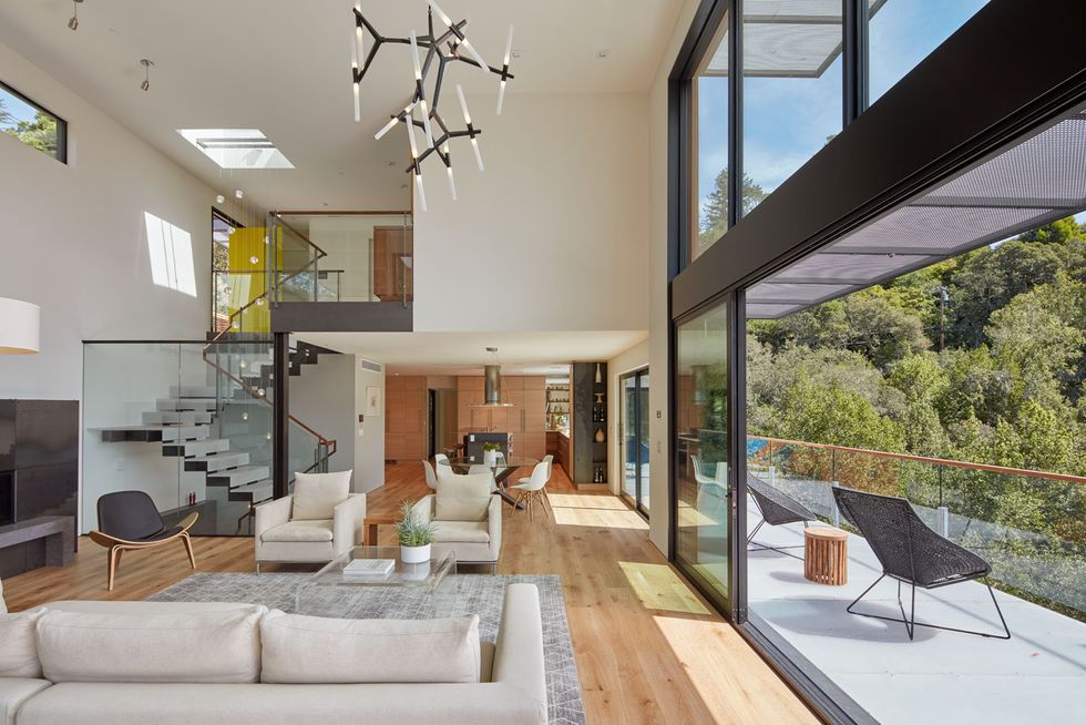 441 Tamalpais Avenue is essentially a treehouse—built on Mt. Tam, it is completely immersed in the calm and beauty of nature, and is designed to combine privacy with an open-to-the-elements floor plan.