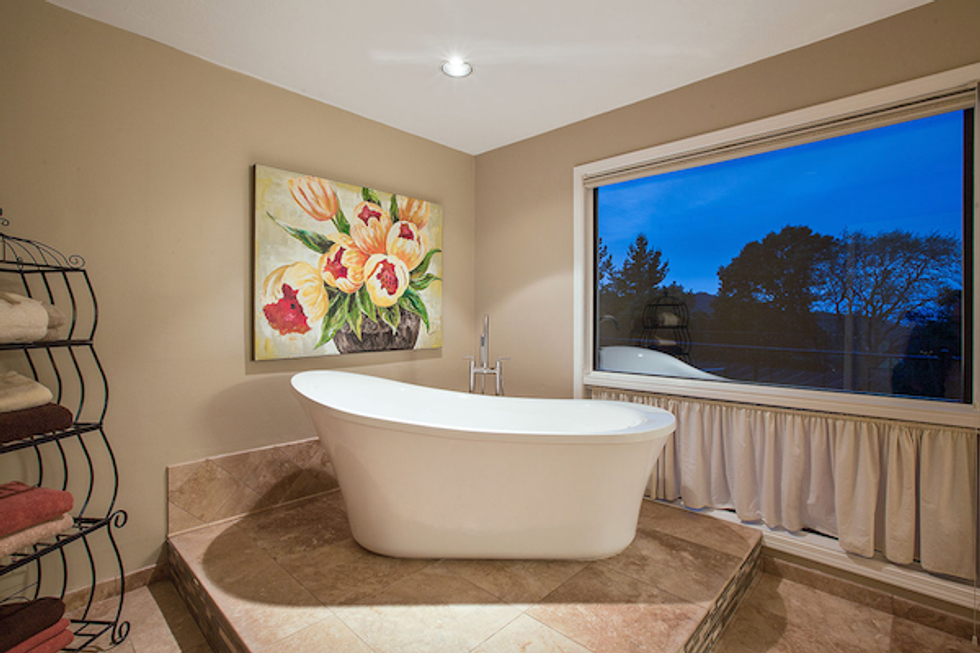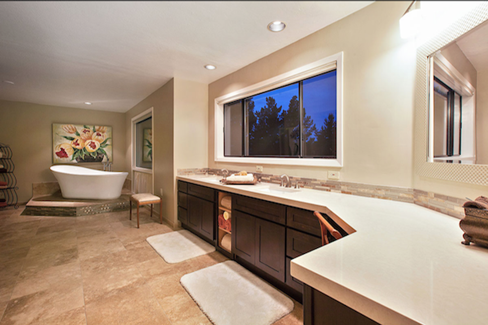 The two-story abode comes equipped with a master bedroom (with gorgeous views of Mount Diablo, of course) and a walk-in closet with two rotating caddies. There's an even a wet bar inside the bedroom, so there's no need to find your slippers if you want a nightcap. Meanwhile, the master bathroom has a bidet and a sunken tub that would make any spa jealous.