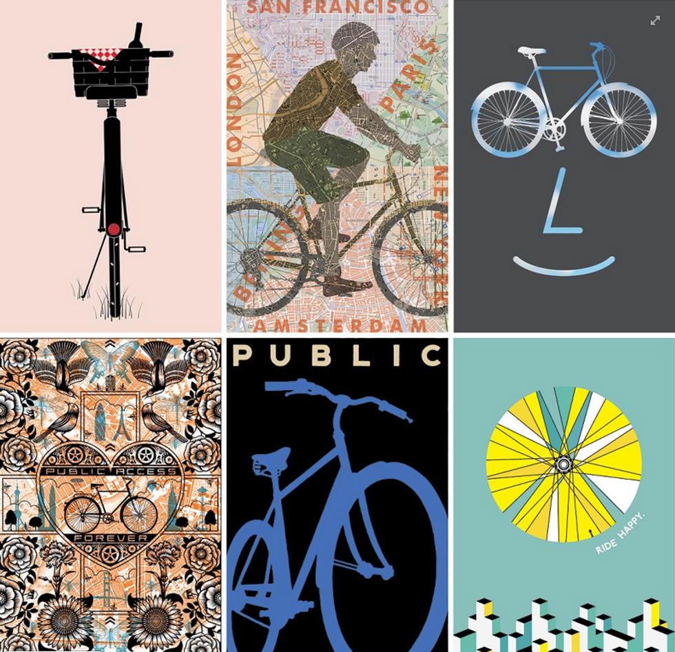 Prints of each piece are available for purchase through Public Bikes' shops and online, but if you buy at the opening tonight, 10% of the proceeds will benefit the SF Bicycle Coalition.