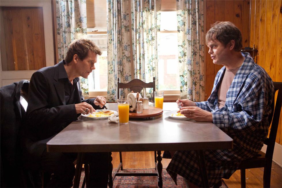 Perhaps, then, it should come as no surprise that Wilson jumped at the chance to star in James Gunn’s Super, an ultra-violent black comedy about a down-on-his-luck everyman who turns vigilante when his wife leaves him for another man – in this case, Jacques, a sleazy, low-level crime boss played by a delightfully reptilian Kevin Bacon.