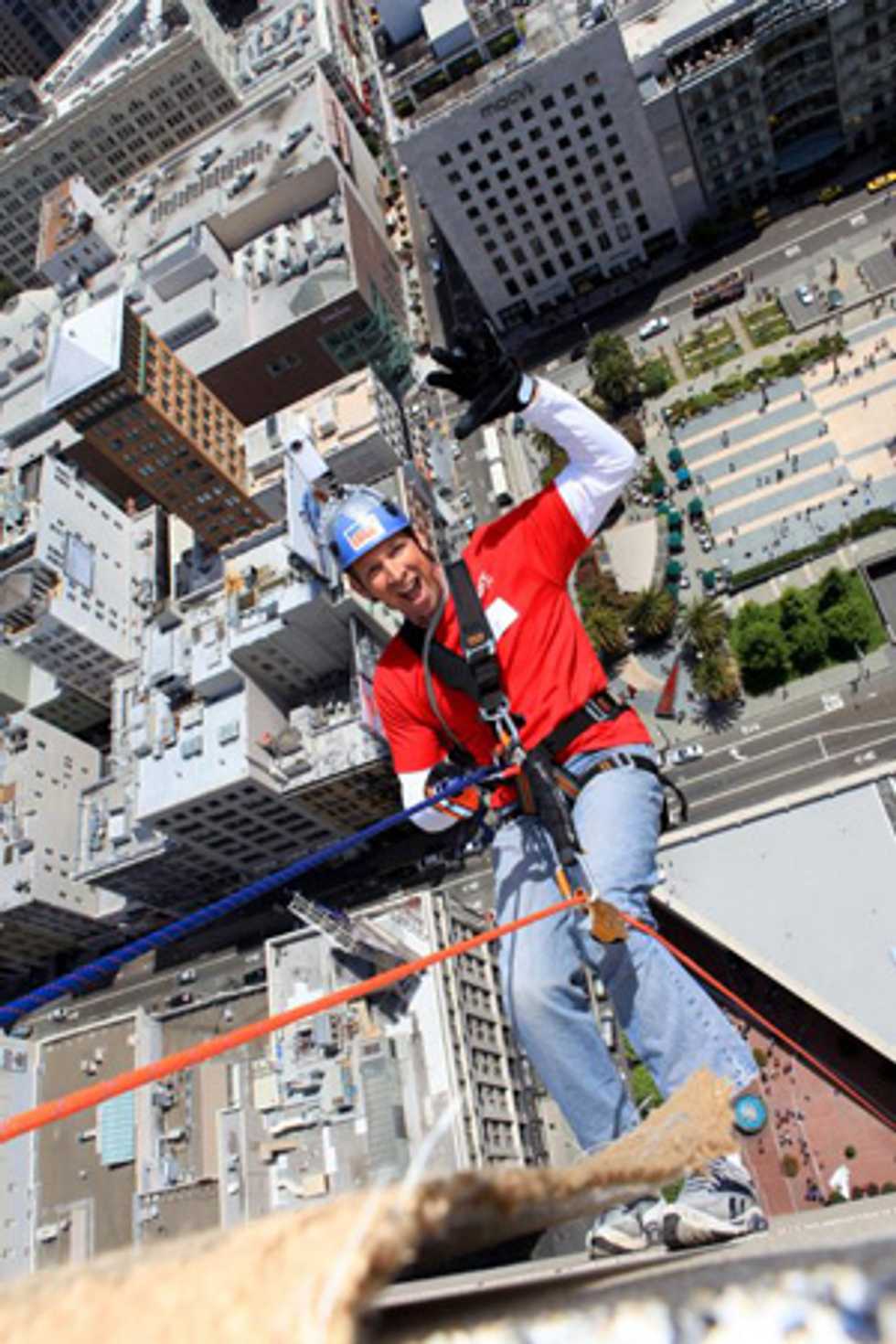 What's the catch? To participate, individuals must raise at least $1,000 for the SONC, and hurry because only the first 100 people get to rappel. Raise more, get more -- $2,500 earns a one night stay at the Grand Hyatt SF during the event, and $5,000 earns a free trip to the Las Vegas Over the Edge event this October.