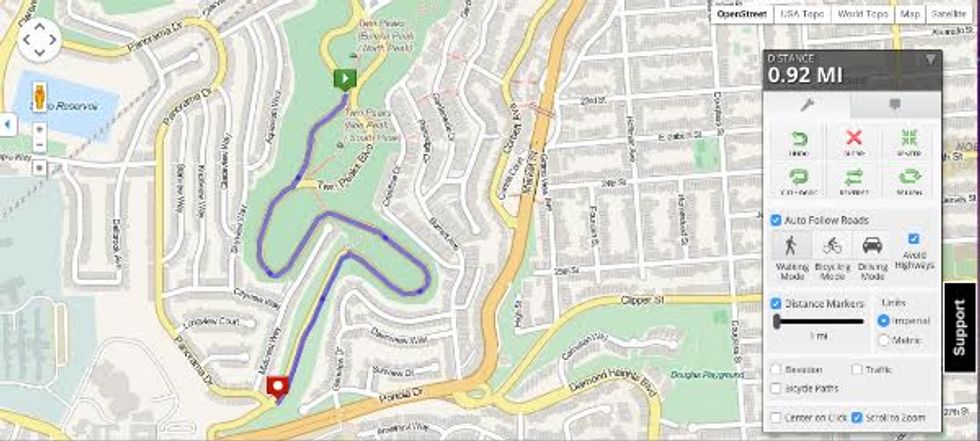 A simple and lovely city run, this two-plus-mile loop is both low in elevation and conveniently located near some great after-run treat shops. Plus, there's ample parking. Be sure to stop for a hot minute to catch your breath at China Basin Park, and bring your pup for playtime at Mission Bay Dog Park.