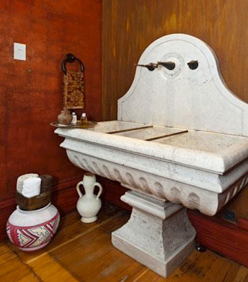 Not So Basic: It started out life as an interesting mash-up of Arts & Crafts and Queen Anne— which it continues to be— overlaid with some active re-decoration. A lot of Venetian plaster. Kudos to the owners for not holding back, and they don't seem to have done any harm— although that sink/horse trough/public fountain in the powder room (above) might get a little splashy. Seriously, where do you find a low-flow toilet to match? Read more...