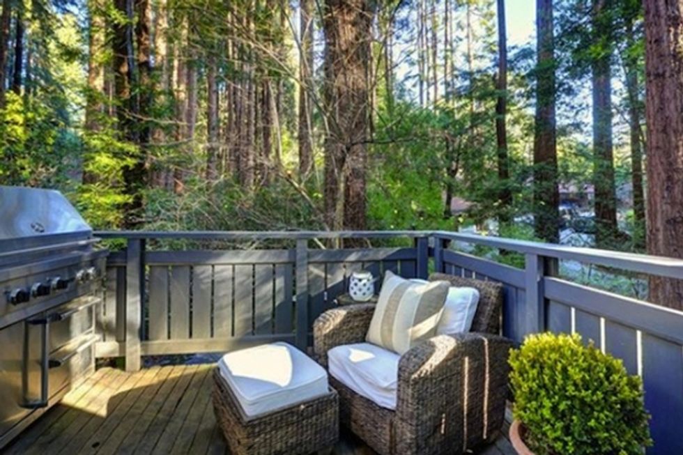 He and his wife Tolan put their Mill Valley home on the market this week, and while it's a classic Marin cottage and beautifully redone, it's the kitchen we're in love with. Above, concrete counters, a sink as big as a bathtub, bead board, and a knife rack to reckon with. With well-organized open shelves, the windowed pantry does double duty as a work and staging space, and leads to the barbecue deck: