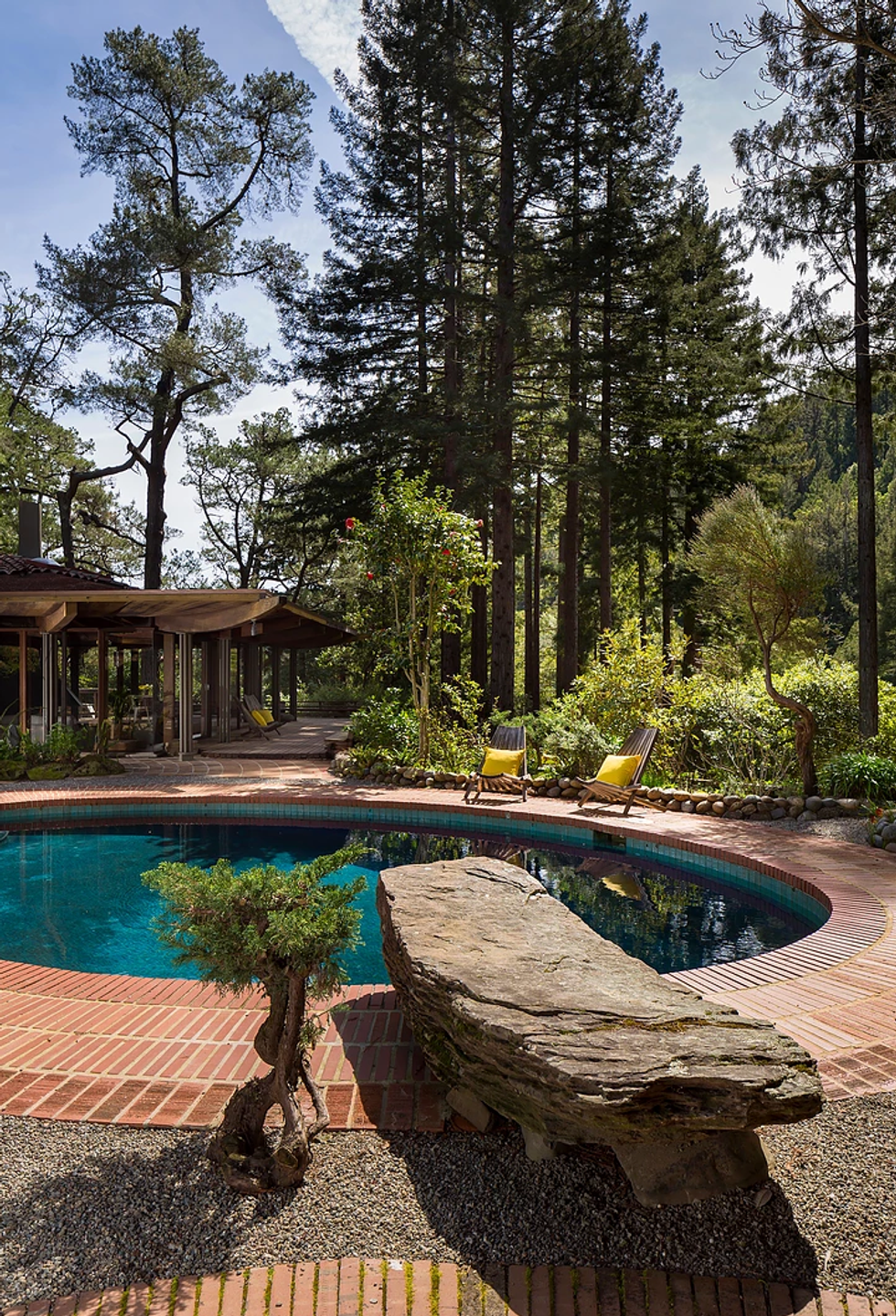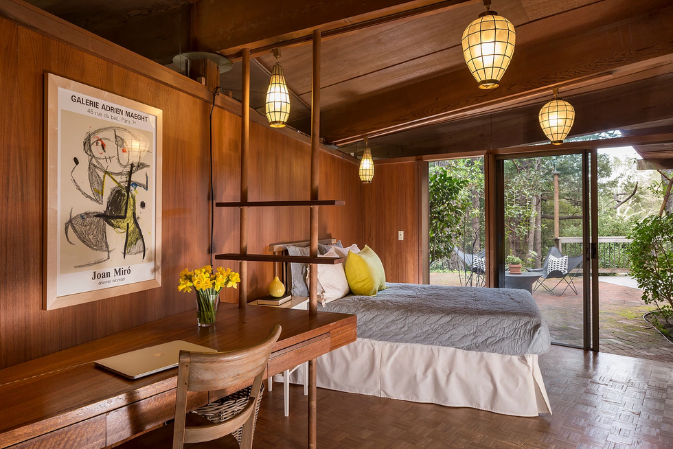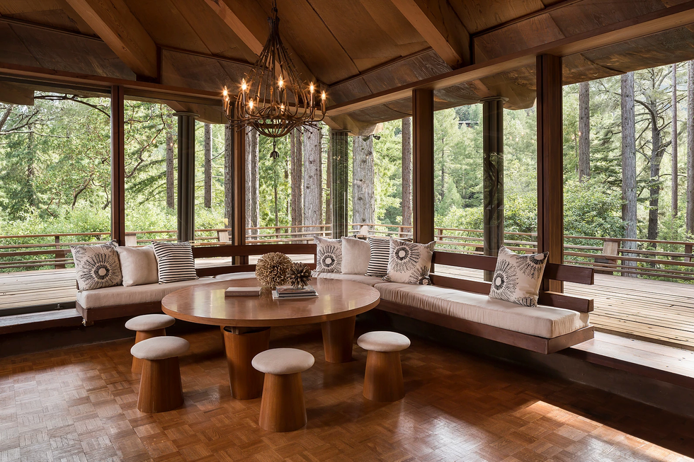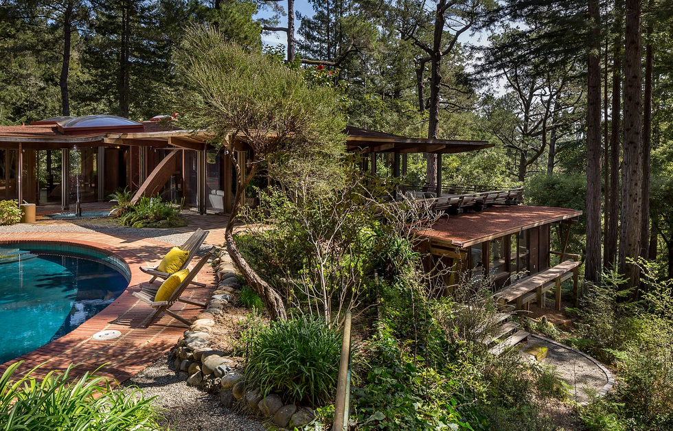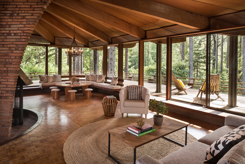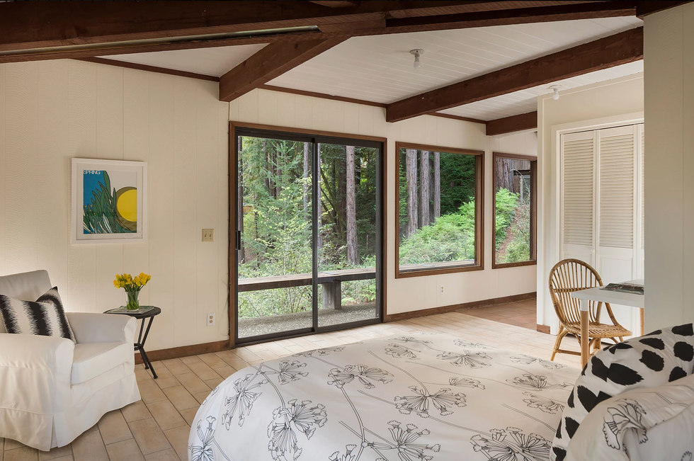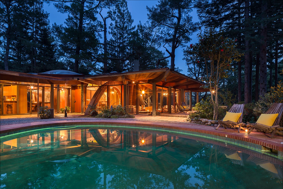 Sleep under the redwoods and wake to the sound of the Cascade Falls at this luxe Mill Valley house, designed and built in 1962 by Frank Lloyd Wright protégé Daniel Lieberman, at the foot of Mt. Tamalpais. The property is enough to make any nature-lover swoon. Surrounded by sky-high trees, the midcentury home blends seamlessly into the forest with floor-to-ceiling glass panels and one-level redwood-clad design. And, with over an acre of private land, its homeowners get to enjoy this pocket of paradise for themselves.