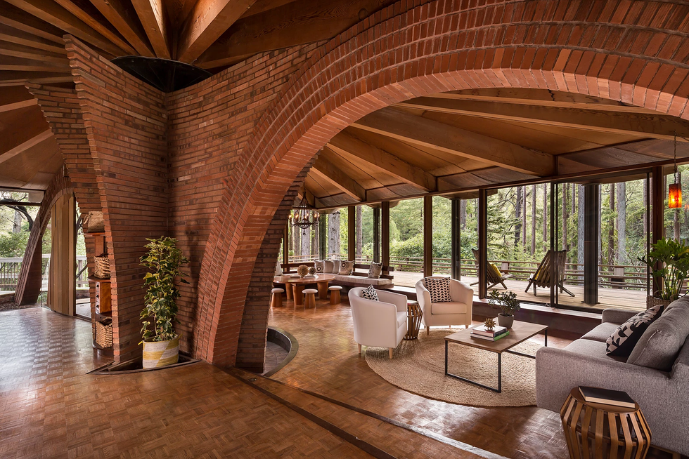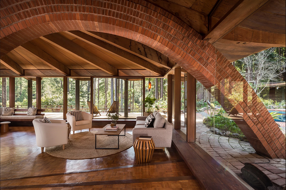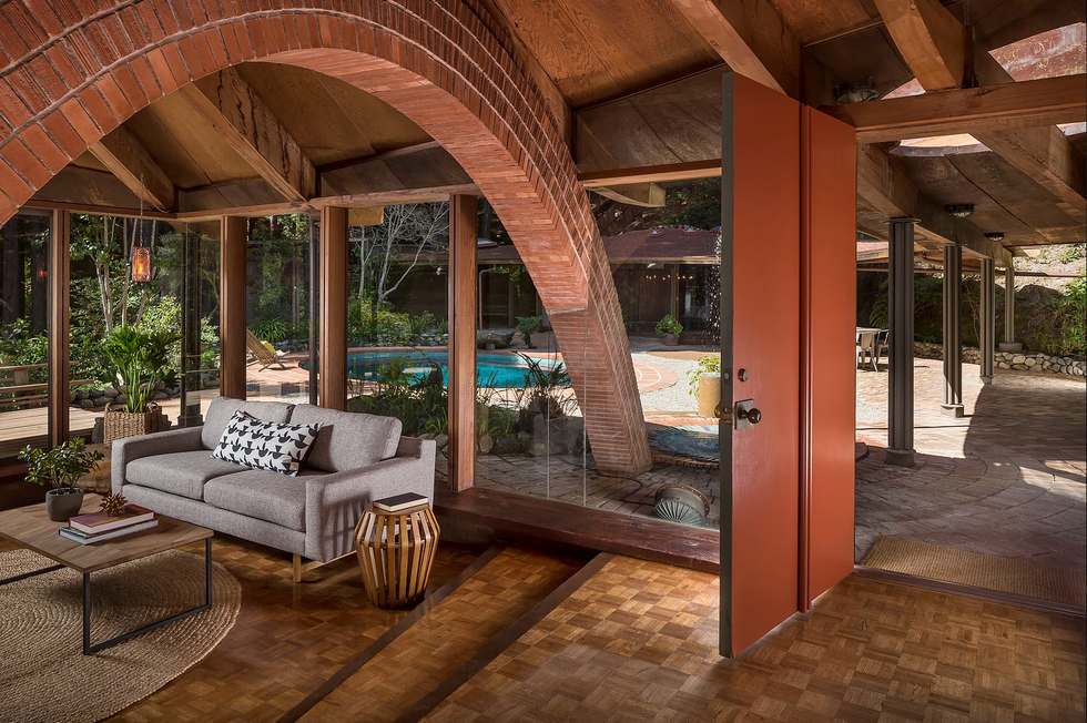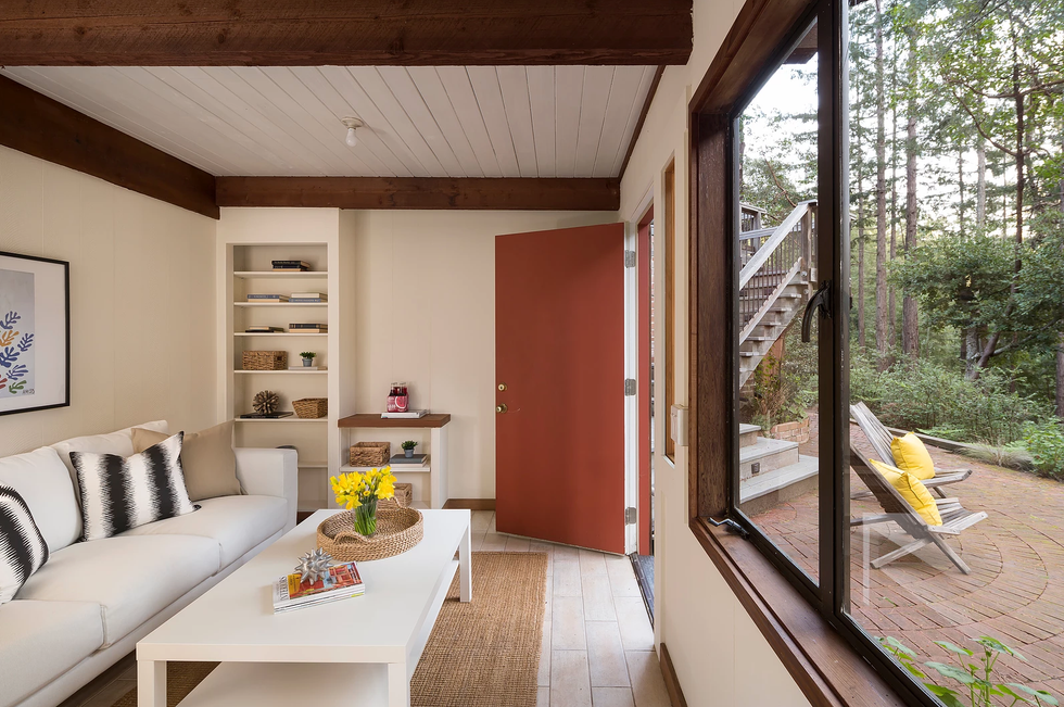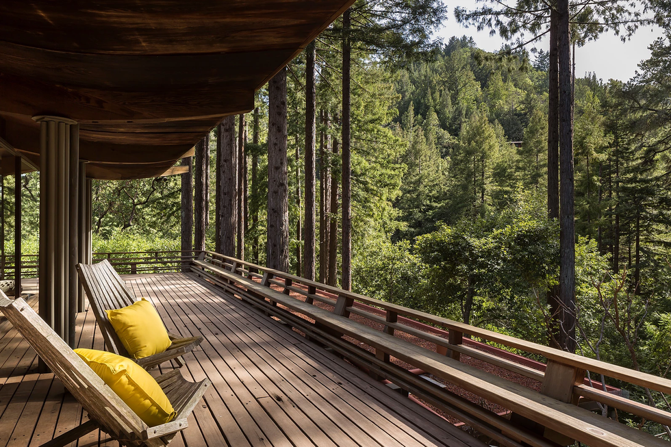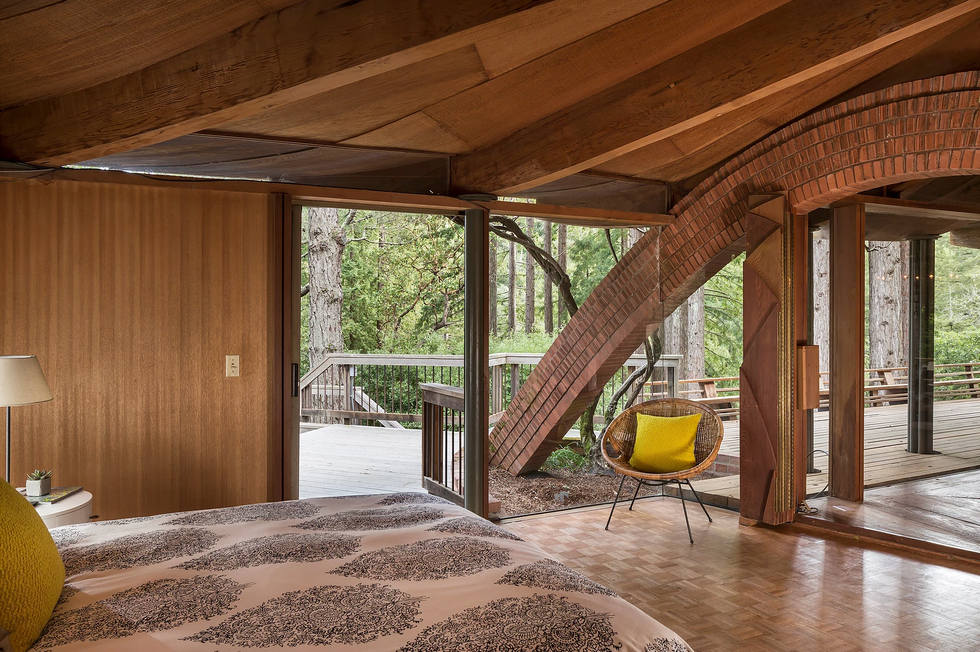 Sleep under the redwoods and wake to the sound of the Cascade Falls at this luxe Mill Valley house, designed and built in 1962 by Frank Lloyd Wright protégé Daniel Lieberman, at the foot of Mt. Tamalpais. The property is enough to make any nature-lover swoon. Surrounded by sky-high trees, the midcentury home blends seamlessly into the forest with floor-to-ceiling glass panels and one-level redwood-clad design. And, with over an acre of private land, its homeowners get to enjoy this pocket of paradise for themselves.