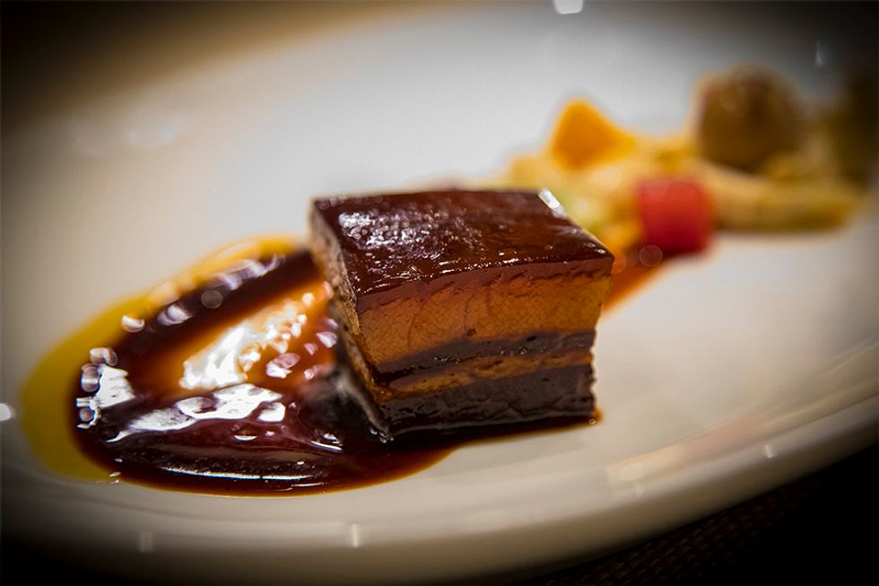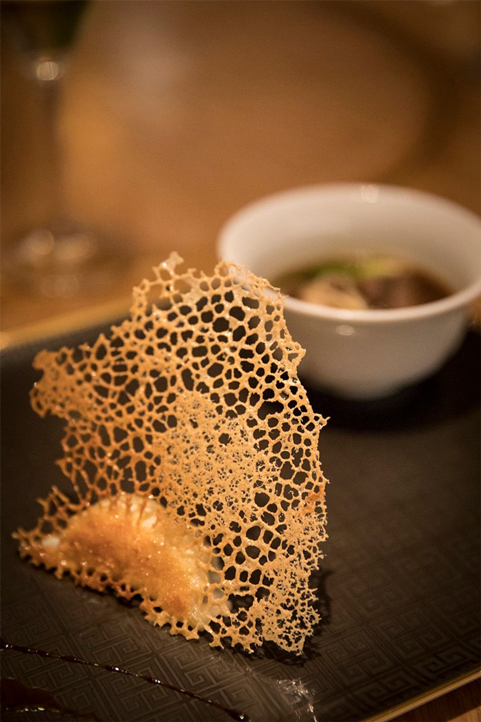 The heightened atmosphere, however, never overshadowed the food, whether the upside down sizzling rice soup with poached lobster, sea grapes, abalone and bottarga, whose aromas called to mind a cornucopian tide pool; luxuriously unctuous slow-cooked pork belly, an homage to a recipe created by the Song Dynasty poet Su Dong-Po; or oil-poached velvet Dungeness crab whose impossibly creamy texture called to mind a similarly life-changing dish of scrambled eggs I encountered not long ago at Restaurant Joël Robuchon in Monte-Carlo.