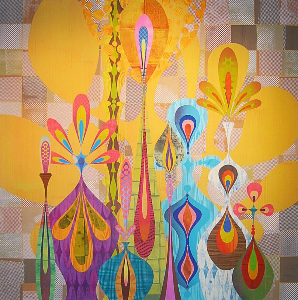 The exhibition coincides with the gallery's release of the monograph Rex Ray: We Are Made of Light, a book lushly illustrated with Ray's paintings, collages, and graphic designs created for The Rolling Stones, Iggy Pop, U2, Radiohead, David Bowie, Bjork, and more.