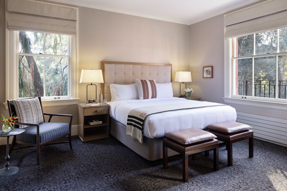 While Sonoma is packed with wonderful restaurants and wineries, we recommend mostly laying low on the historic property, which was first built in 1869 as the private estate for David Burris. Take advantage of the bright new restaurant Layla, where dinner highlights locally sourced products like Tsar Nicoulai caviar and Schramsberg bubbly, or have classic cocktails in the buzzy bar. Then, make the most of your suite where indulgent amenities include fireplaces, deep soaking tubs, private patios, and outdoor showers.