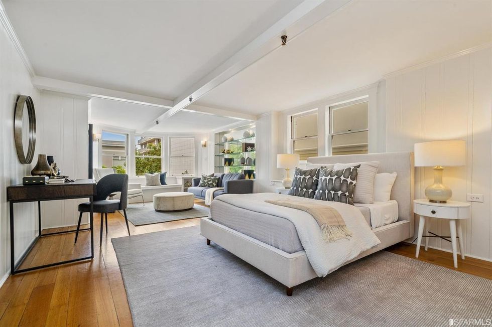 There are five bedrooms in all, including the primary suite which has two romantic alcoves with bay views, a fireplace, and a jacuzzi tub in the spacious bathroom.