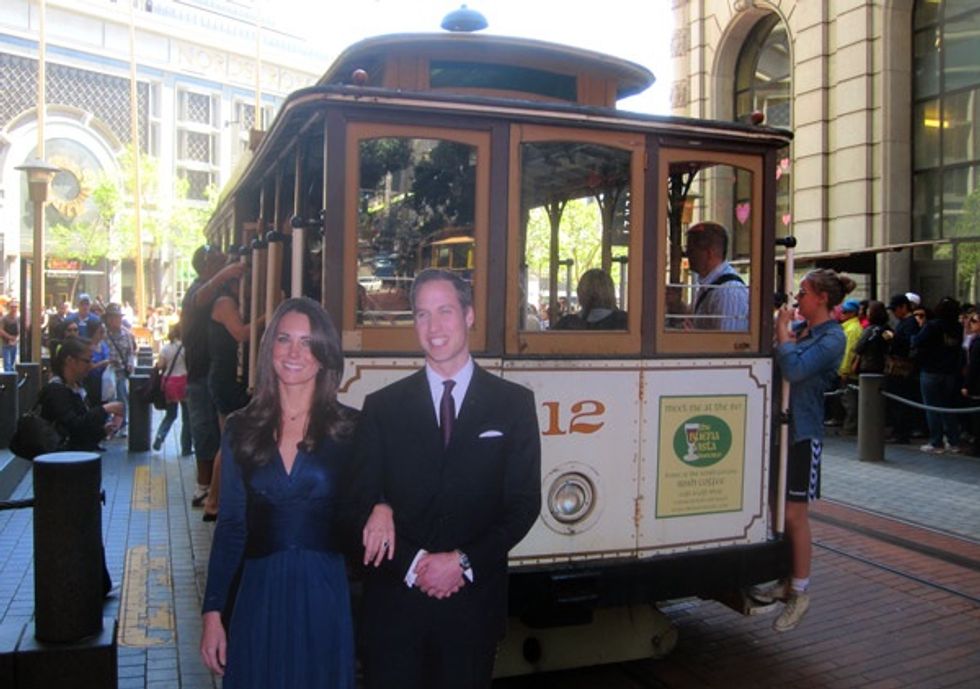 Earlier today, there was a frenzy surrounding reports from SFist, Bay Citizen and CBS that the royal newlyweds are planning a trip California–Kate Middleton's first-ever voyage to America–in July. We thought we were immune to the hype until we happened upon William and Kate themselves posing (rather stiffly) for photos on this gorgeous spring day at the cable car turnaround, just blocks away from 7x7 HQ. Luckily we had a camera on us!