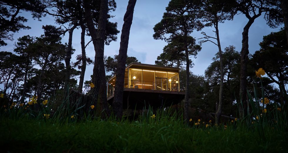 The so-called House in the Clouds will suit the contemporary design lover who's not afraid of heights—stacked on stilts on the ridge top, the 604-square-foot space is encased in windows and has a wraparound deck offering views of the Point Reyes Peninsula, Abbott's Lagoon, and Tomales Bay. The interior is a modern echo of the outdoors with light wood paneled ceilings and walls.