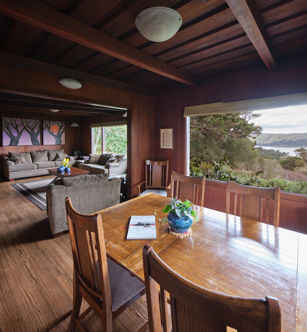 For outdoorsy types who like a more rustic escape, the two other residences have it in wood-clad porches, exposed beams, stone walls, and a wood burning stove. On the east side of the property, one 1,200-square-foot house has two bedrooms and one and a half baths, and views of the popular Heart's Desire beach. A third house, at 1,400 square feet, has three bedrooms, two bathrooms, and panoramic vistas of Tomales Bay State Park from the master suite and living room. Both houses let the outdoors in through picture windows and decks overlooking the landscape.