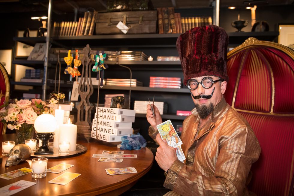 Guests enjoyed musical performances and fortune-telling while taking in the decadent surroundings. Shirtless models served delectable cocktails while tendrils of fog (so San Francisco!) tickled guests' ankles and added to the sense of illusion. Much to guests' delight, Fulk's stuffed saber-toothed tiger named "Tatiana" was in attendance and mugged it up for the camera.