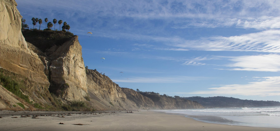 The Gliderport Trail is one of a few ways to reach Black's Beach, including the Ho Chi Minh Hike. Unfortunately, you are in for a steep and relatively short hike no matter where you begin. This particular path is just shy of a mile long and descends 308 feet. The rugged terrain means that it is inadvisable to use the trail after dark, and you may want to lace up your hiking boots even if this is the only bit of hiking you're planning for the day. Partway down the dirt path you will find stairs, some of which are in various states of disrepair. If you have been staring at your feet thus far, take a moment to look out over the beach and across the water. When you reach the beach you can swap out your boots for sandals.