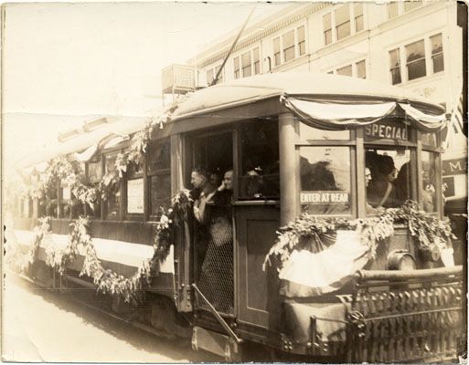 Muni Cars Carrying 363rd Infantry and 347th Artillery from City Hall to the Presidio (1919)