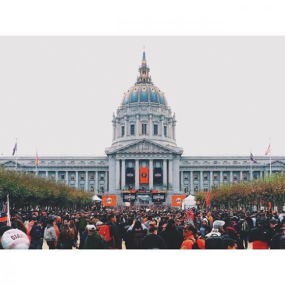 Fans flock to City Hall to celebrate the Giants' 2014 World Series Victory. Photo courtesy of @pedroguavara_