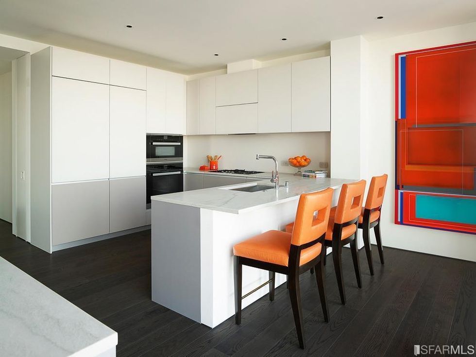But we wouldn't want just any apartment. We would want the turnkey Unit 68B, which of course has all the unobstructed bird's eye views we could want but also comes with all the art and furnishings inside, curated by SF's own Kendall Wilkinson, whose portfolio is mostly chichi residential but can also be seen at the local restaurant Bellota.