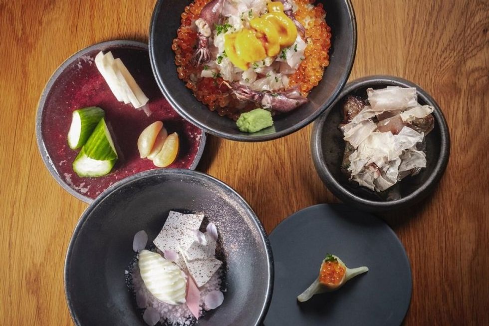 While the restaurant and bar operate autonomously, they share the same ethos. Bar Iris’ drinks—like the Fern Creek (pine, green mango, mezcal, yun wu tea, yuzu sake, chareau, and clarified milk) and the Okinawa (Okinawa yam, calamansi, jougo kakuto, oat milk, li hing mui, and two types of rum)---are every bit as “seasonal, Japanese-inspired, and refined” as the dishes crafted in the kitchen.