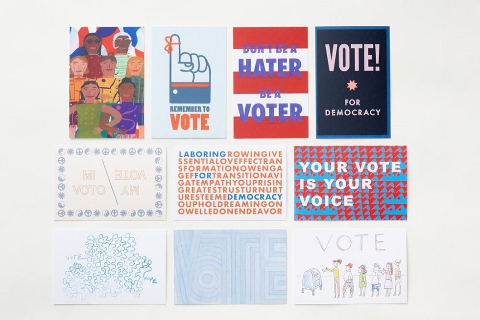 For the latter, the friends created a set of voting-themed postcards featuring illustrations by 10 local artists—including group members Amber Cady and Lena Corwin. One hundred percent of the proceeds will be donated to Fair Fight 2020. Not only is postcard writing an easy way to participate in getting out the vote, it's also effective. According to Vote Forward, which conducted a letter-writing campaign during a 2017 election, voter turnout was 4 percent higher among individuals who had received handwritten letters than those who hadn't.