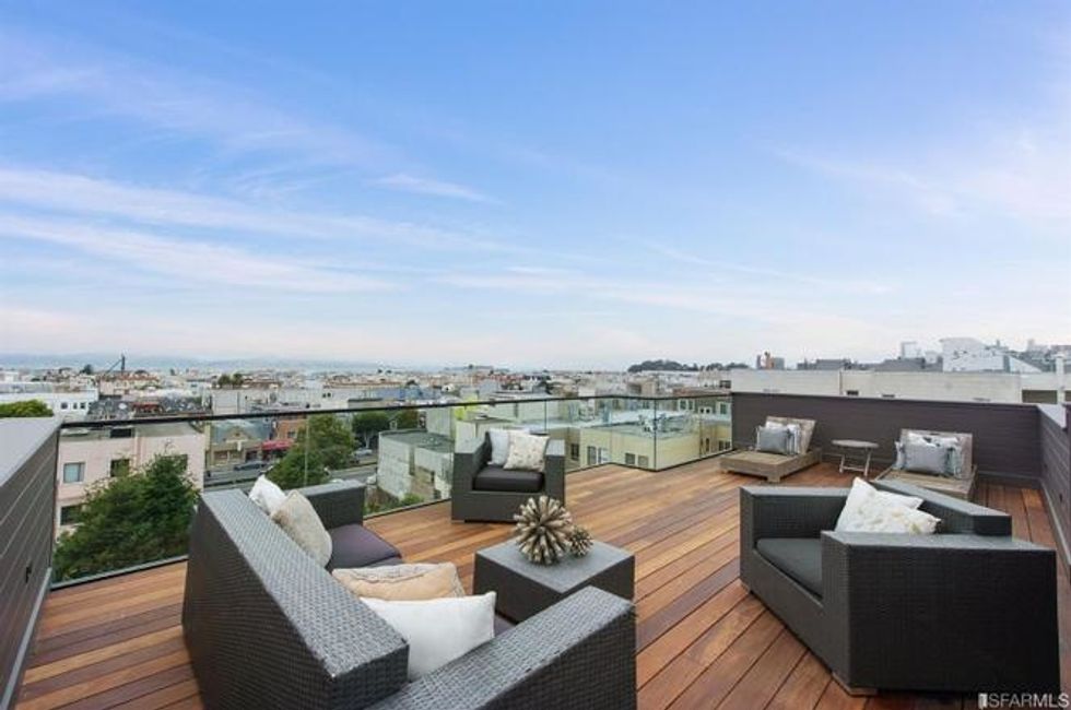 Sure, you'll be all the way across town from the Mission's best restaurants, but you'll have soothing views of the waterfront from your roof deck, as well as an elevator, a garage, a home gym, and laundry room.