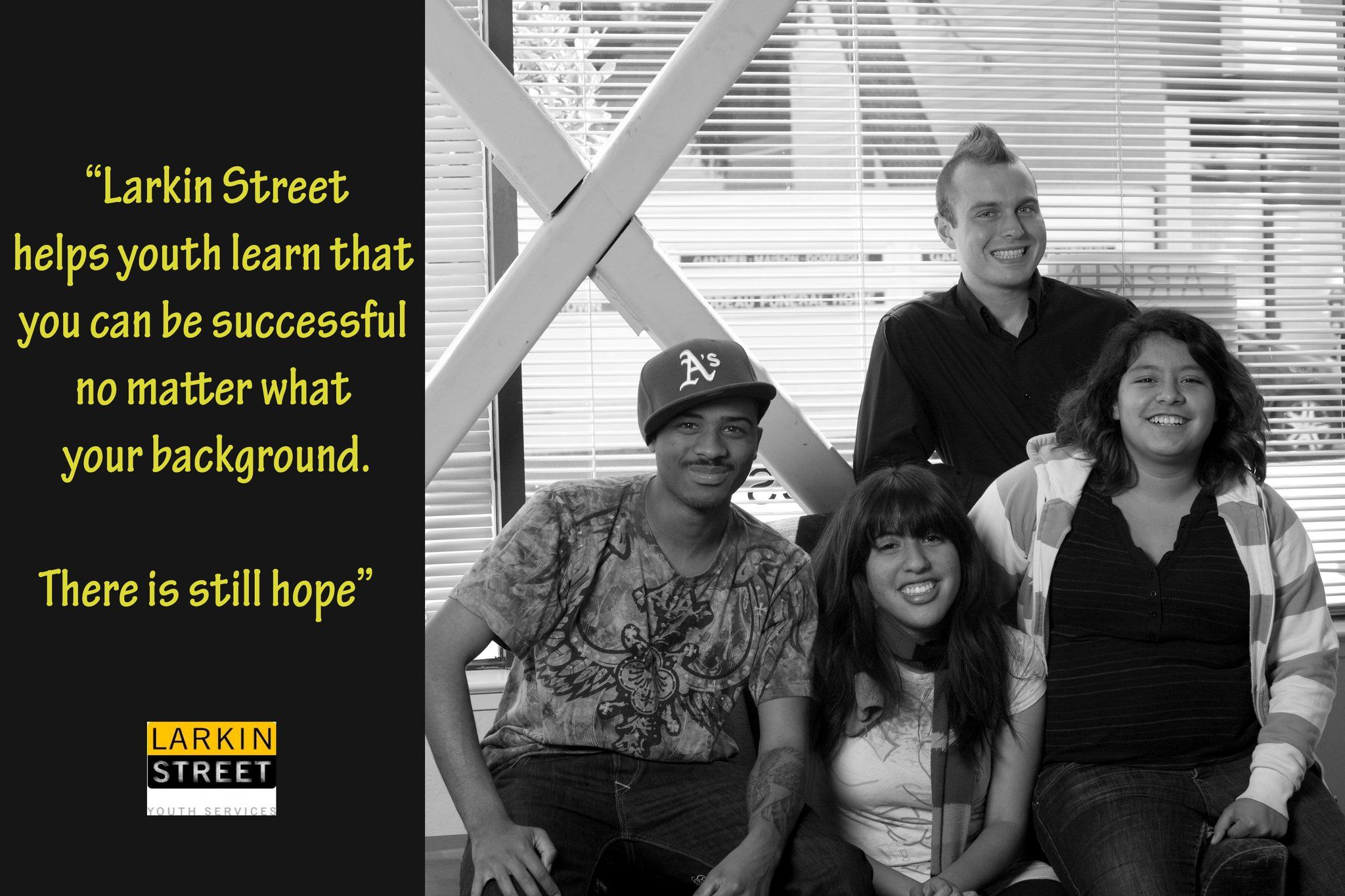 The mission of Larkin Street Youth Services is to create a continuum of services that inspires youth to move beyond the street. They provide a peer-based substance abuse treatment program, provide safe temporary housing for kids who before slept on the streets, and in 1997, they opened the nation’s first comprehensive housing program for HIV+ youth, named Assisted Care.