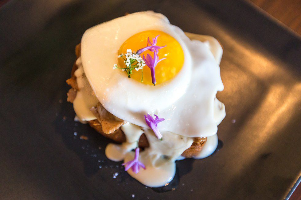 Monarch bucks the avo toast trend with an open-faced braised pork sandwich on a thick slab of house-made brioche.