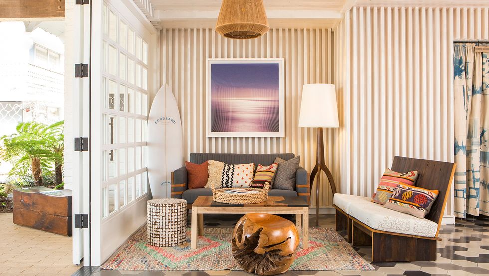Walking into the retro-chic Goodland feels like you've stumbled into a modern Joshua Tree casa. In Outer Sunset-meets-Mission style, the hotel is brimming with Instagram feature potential including surfboards on the ceiling, colorful tiles, macrame wall hangings, and woven textiles galore. The once, not so stylish Holiday Inn is now a design haven with beach cottage vibes. Peruse the vinyl library in the lobby to listen to your favorite tracks on the record player in your room; take a dip in the orbicular pool, or practice your down dog in one of the weekly yoga classes. // 5650 Calle Real, thegoodland.com